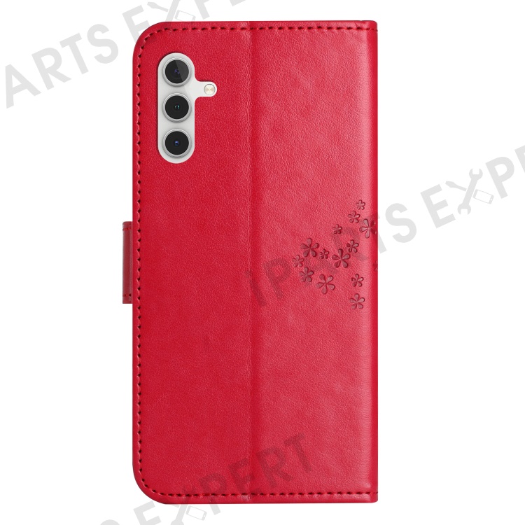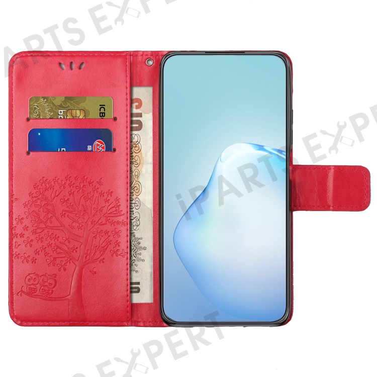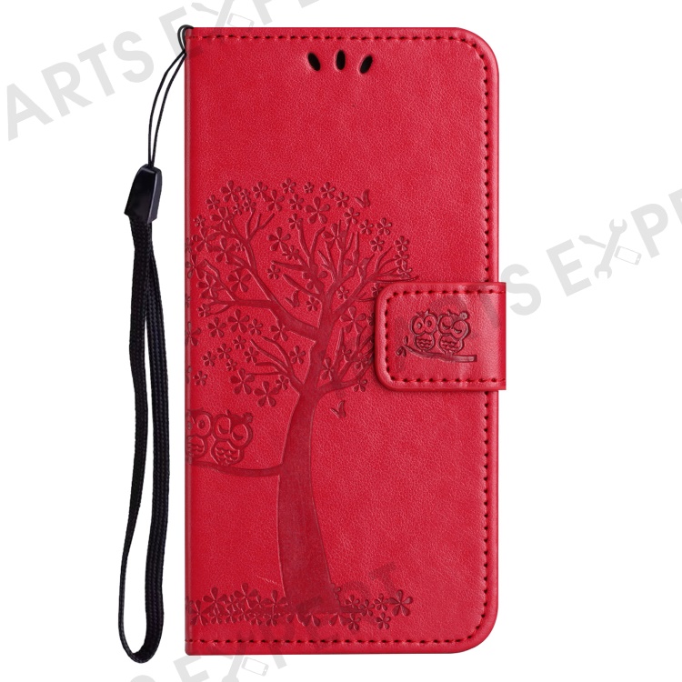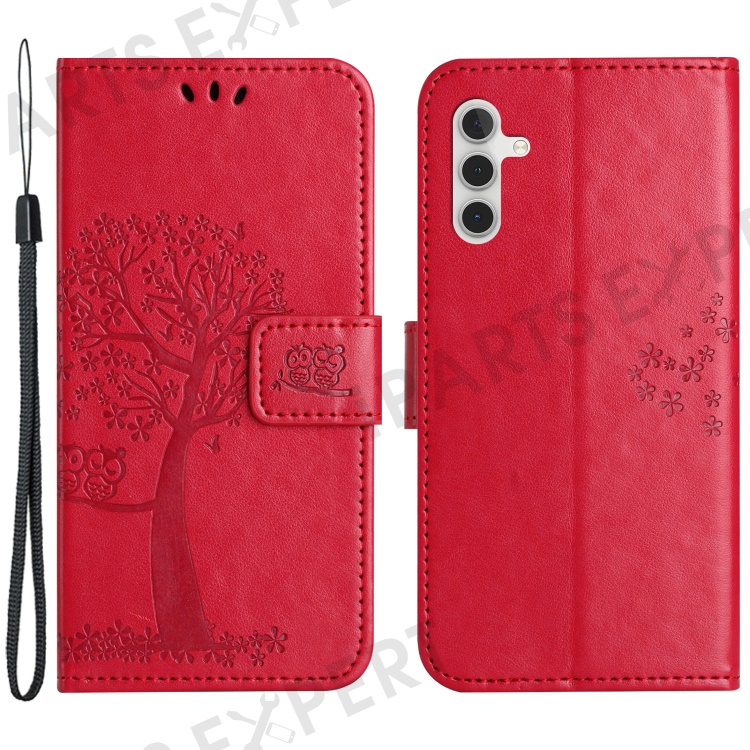 PU For Samsung Galaxy A25 5G (Global) (161.0 x 76.5 x 8.3mm) Owl Tree Imprinted Foldable Stand Phone Cover - Red