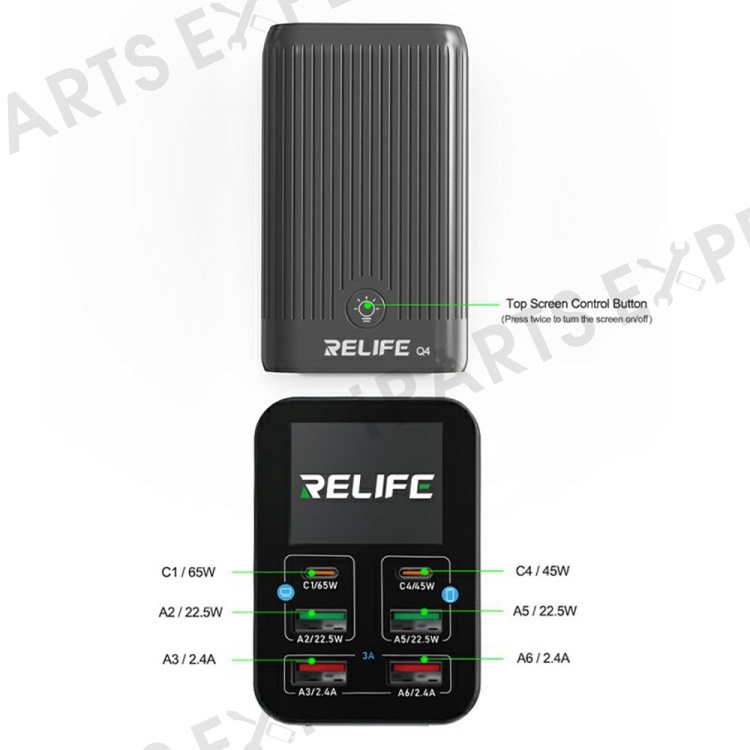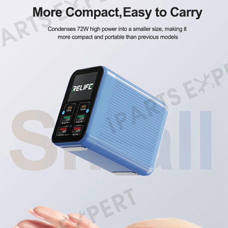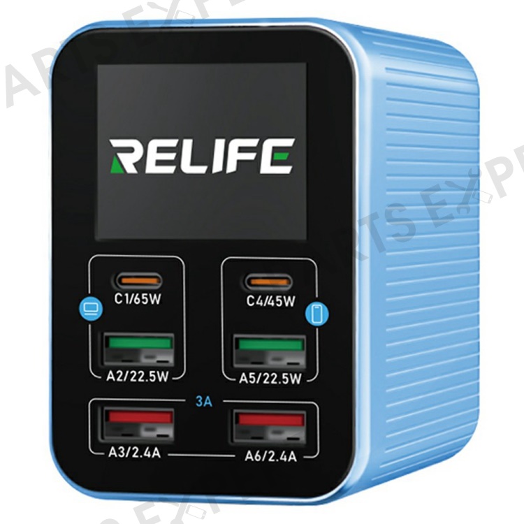 RELIFE Q4 Smart 6-Port Fast Charger 72W Dual PD / Dual QC TFT HD Color Screen Smart Sleep Mode For Home / Office Use - Blue / US Plug
