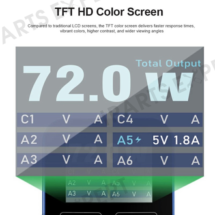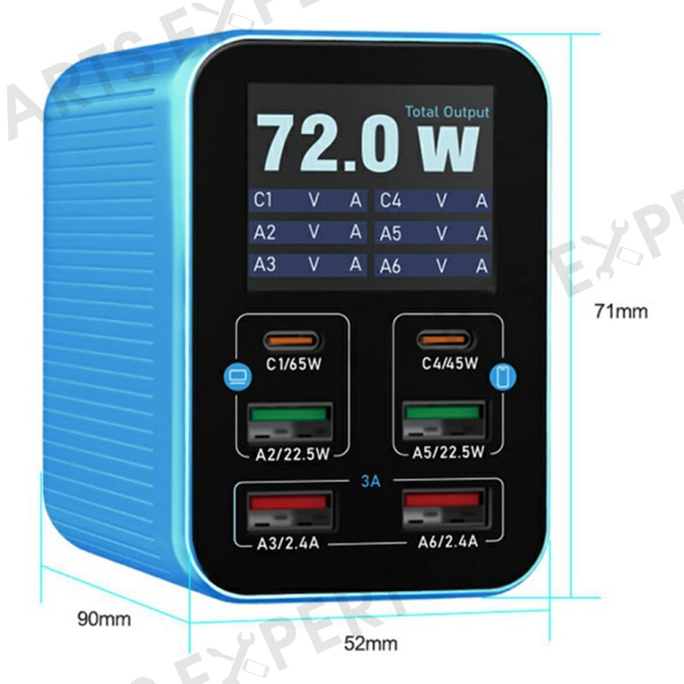 - 【Smart 6-Port Fast Charger】Features 6 charging ports, including 2 PD ports, 2 QC3.0 ports, and 2 USB-A ports, delivering a powerful 72W output for efficient multi-device charging