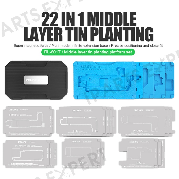 RELIFE RL-601T 22-in-1 Fixture for iPhone X-15 Pro Max Motherboard Middle Layer Board Plant Tin Platform