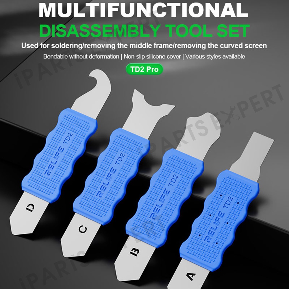 RELIFE TD2 Pro 4Pcs / Set Disassembly Tool for Phone Repair Precision Forged Bendable Steel with Non Slip Silicone Cover