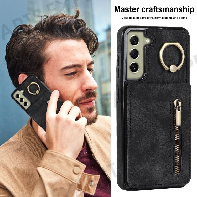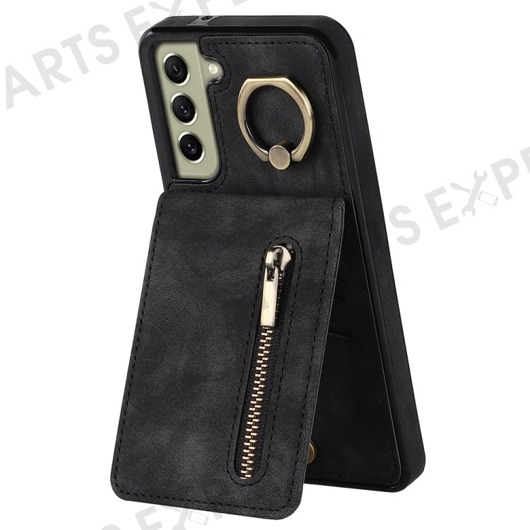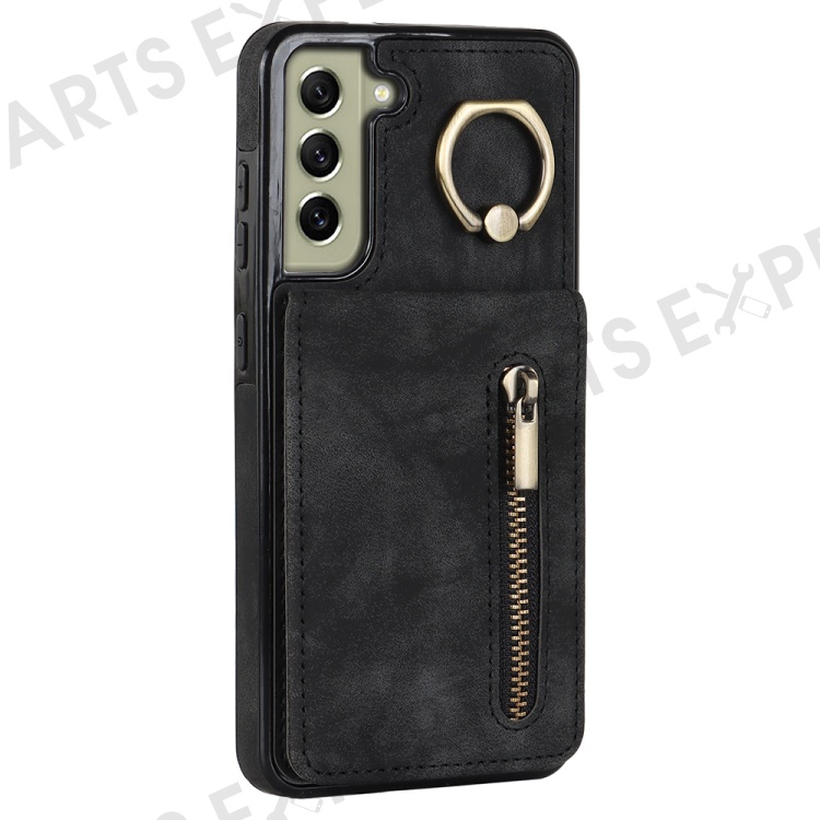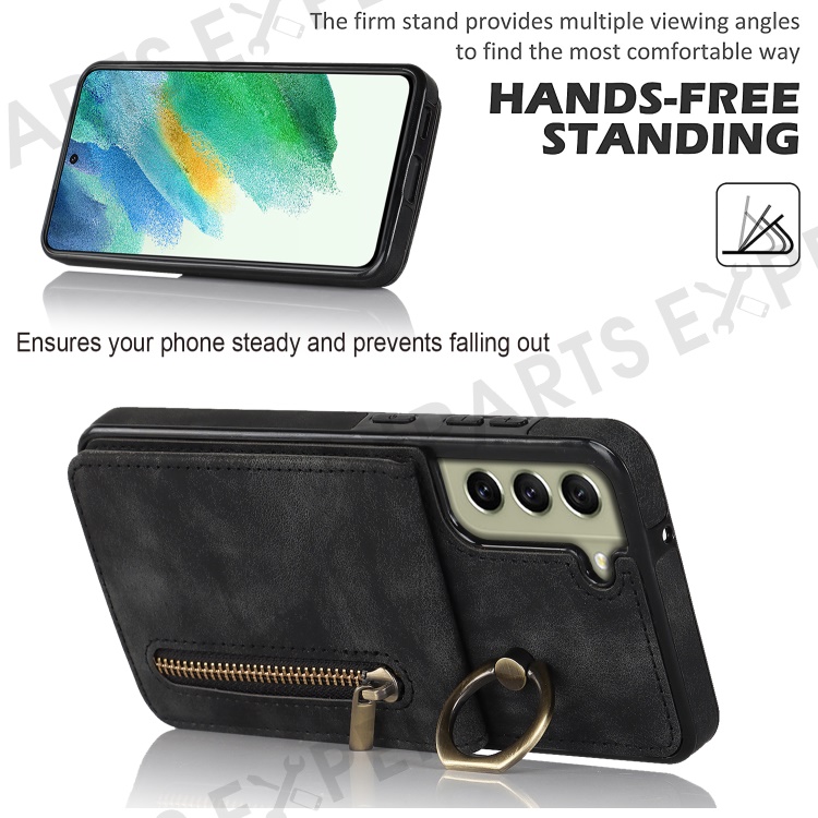 Retro PU+TPU Phone Case for Samsung Galaxy S22+ 5G RFID Blocking Zippered Wallet Phone Cover with Kickstand - Black