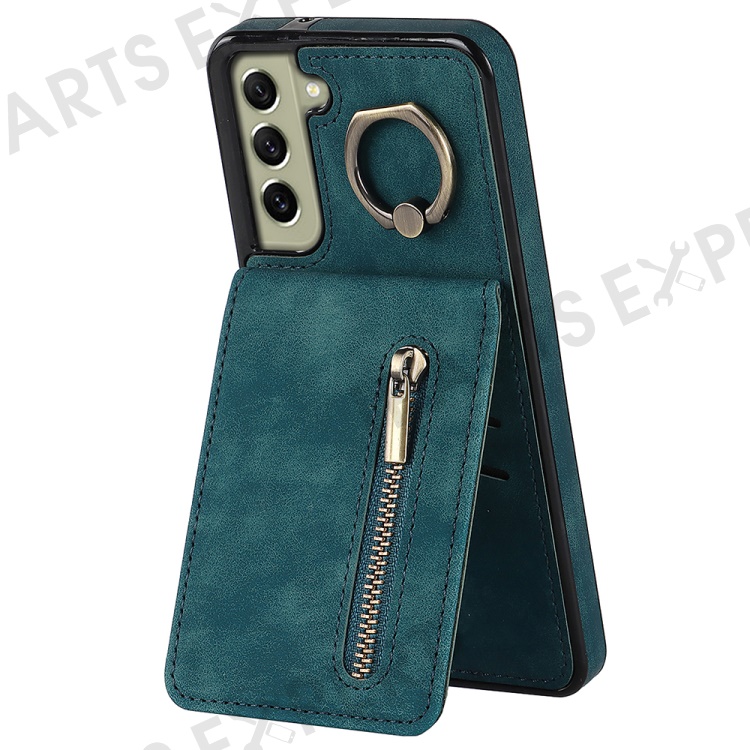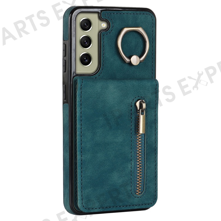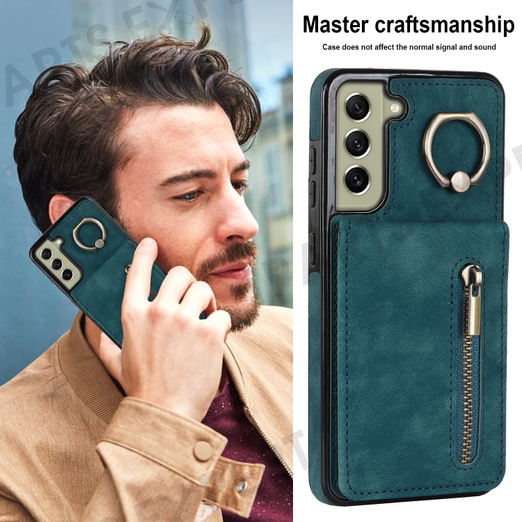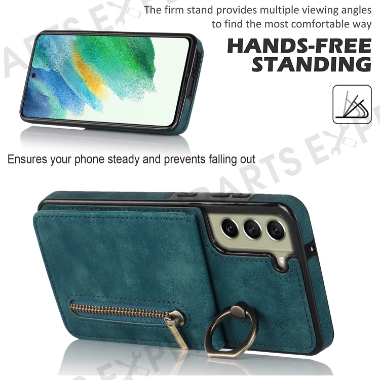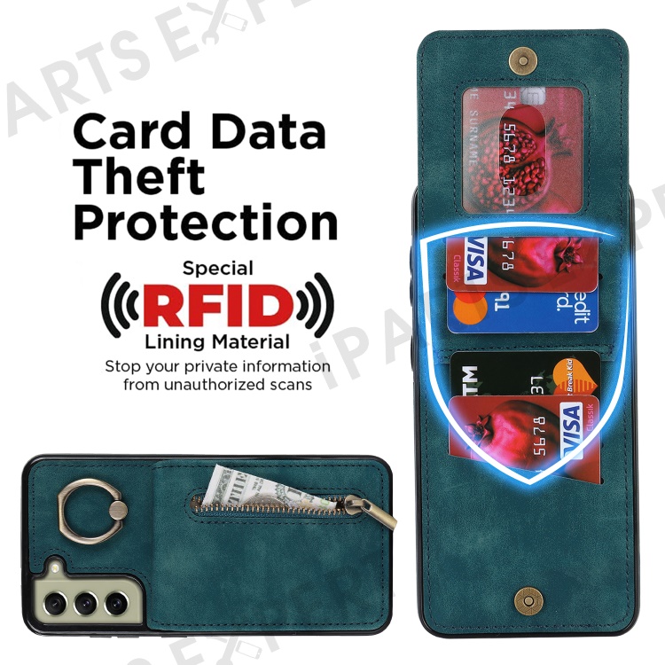 Retro PU+TPU Phone Case for Samsung Galaxy S22+ 5G RFID Blocking Zippered Wallet Phone Cover with Kickstand - Blue