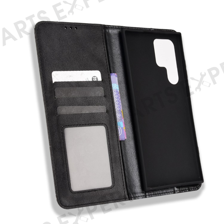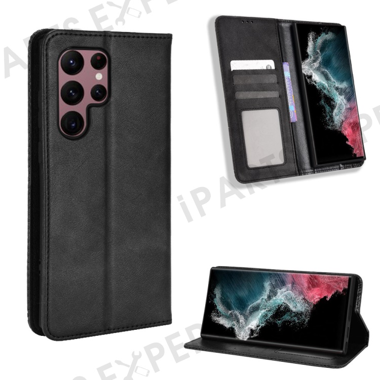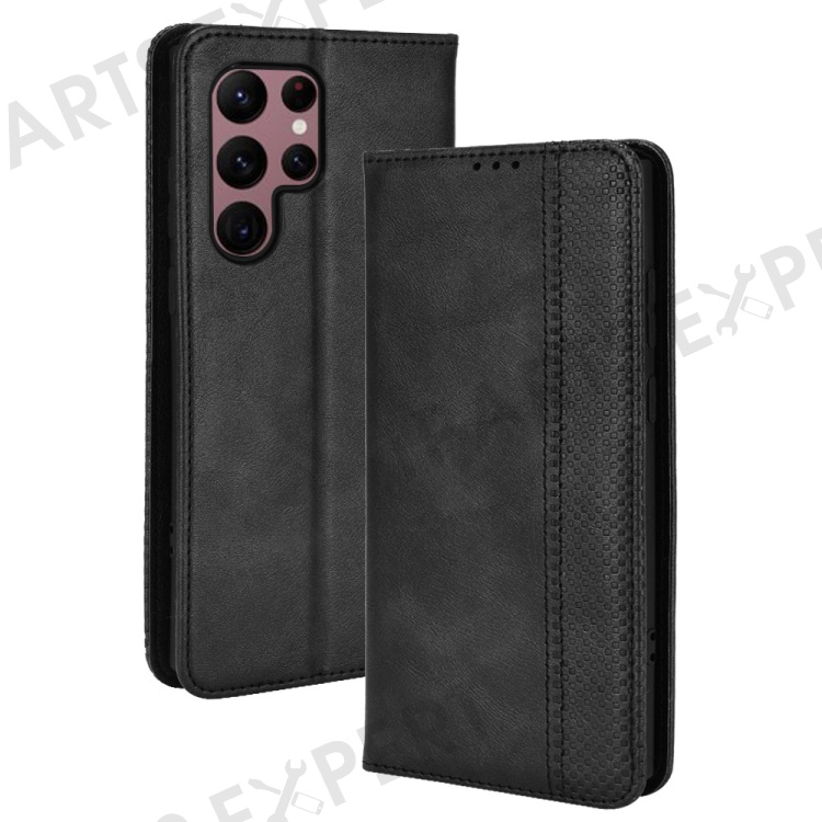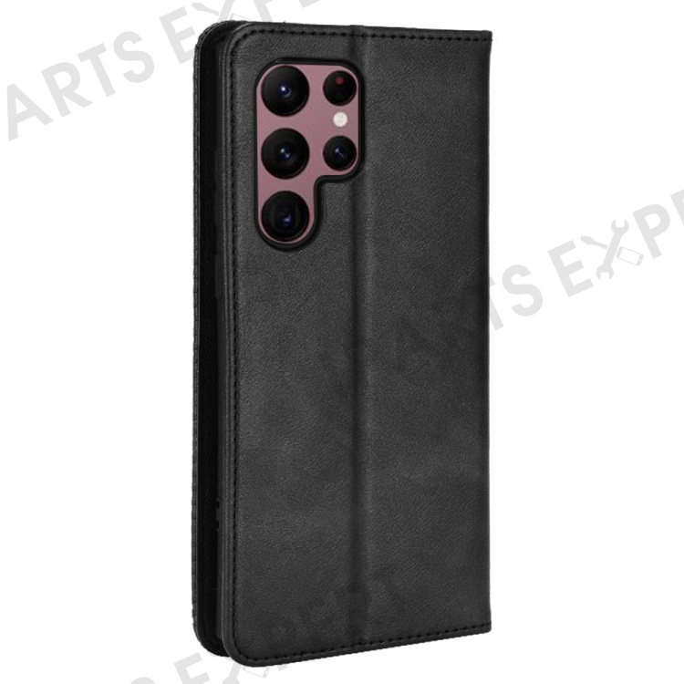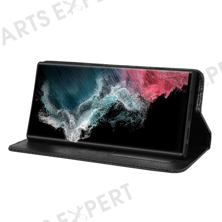 Retro Style Imprinted Leather Cover + TPU Inner Case Wallet Stand Phone Cover Cellphone Shell for Samsung Galaxy S22 Ultra 5G - Black
