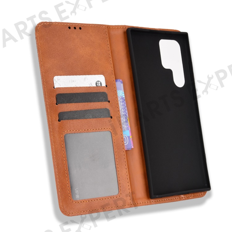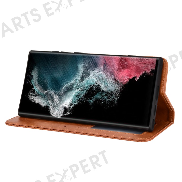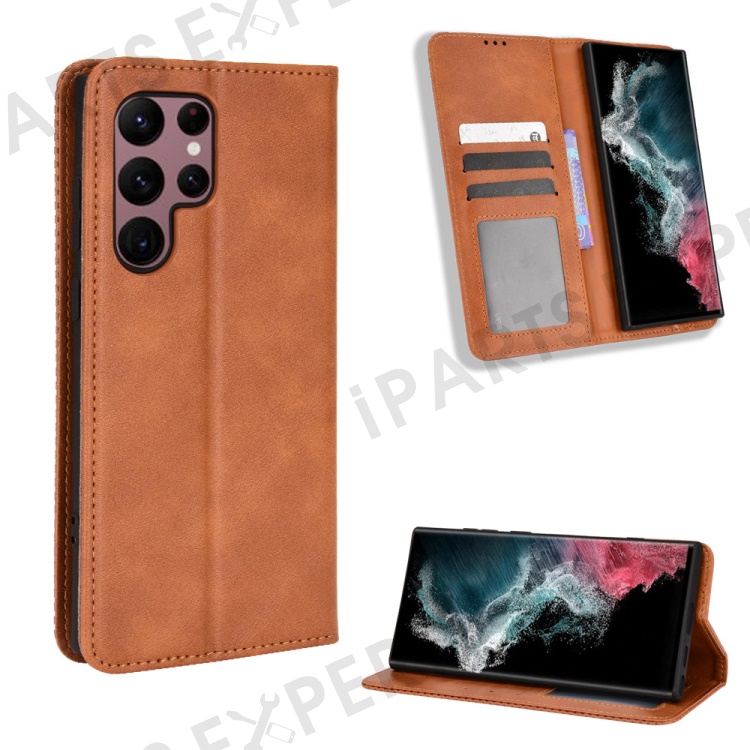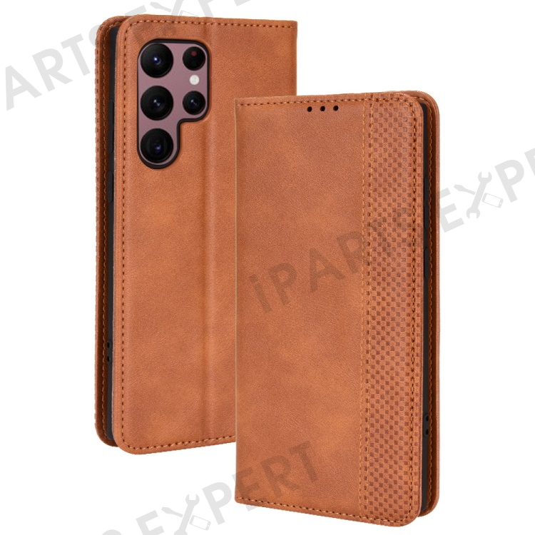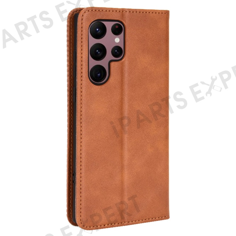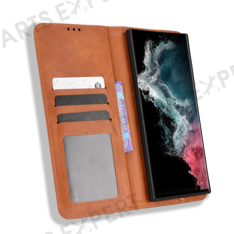 Retro Style Imprinted Leather Cover + TPU Inner Case Wallet Stand Phone Cover Cellphone Shell for Samsung Galaxy S22 Ultra 5G - Brown