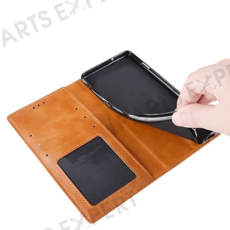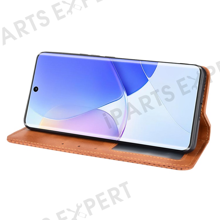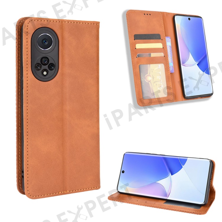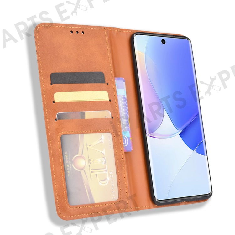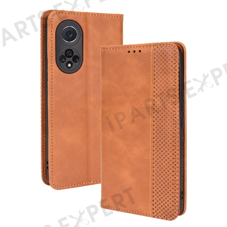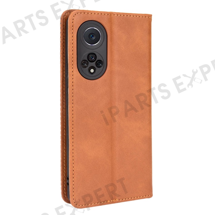 Retro Textured Surface Phone Leather Case Shockproof Wallet Stand Cover for Huawei nova 9 - Brown