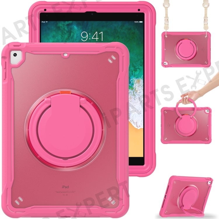 Rotating Kickstand Cover for iPad Air (2013) / Air 2 / iPad Pro 9.7 inch (2016) / iPad 9.7-inch (2017) / (2018) , PC+TPU Handle Grip Tablet Case with Shoulder Strap - Rose