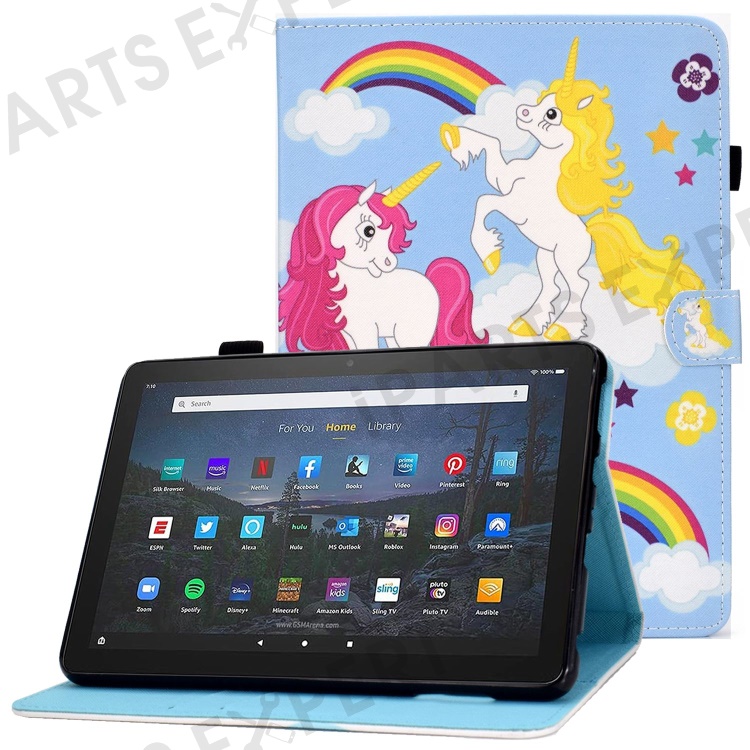Shockproof Case for Amazon Fire HD 10 Plus (2021) Leather Tablet Cover Stitched Pattern Printed Magnetic Cover with Stand / Wallet - Horse