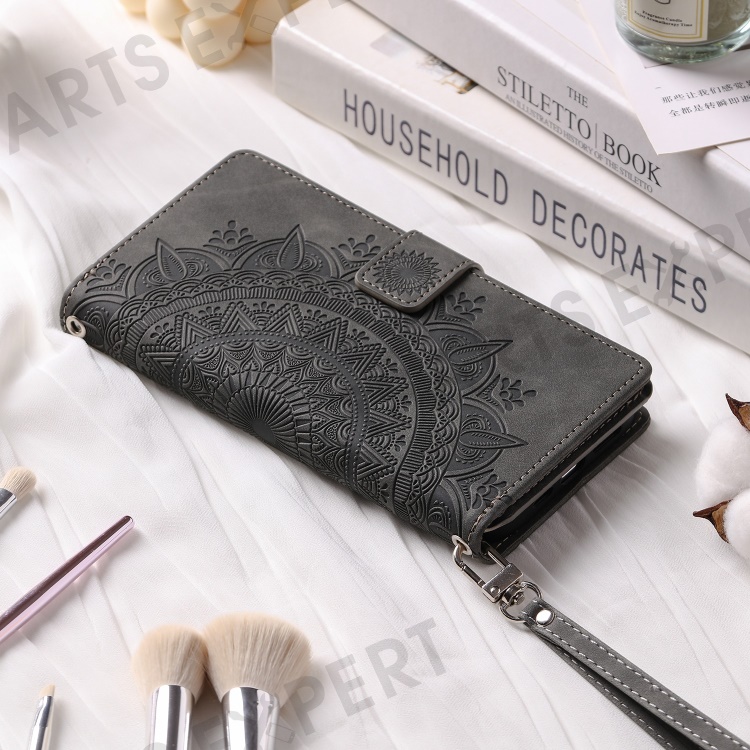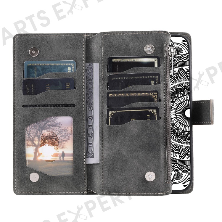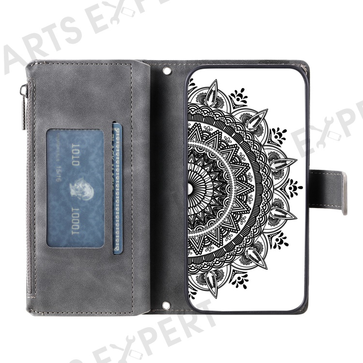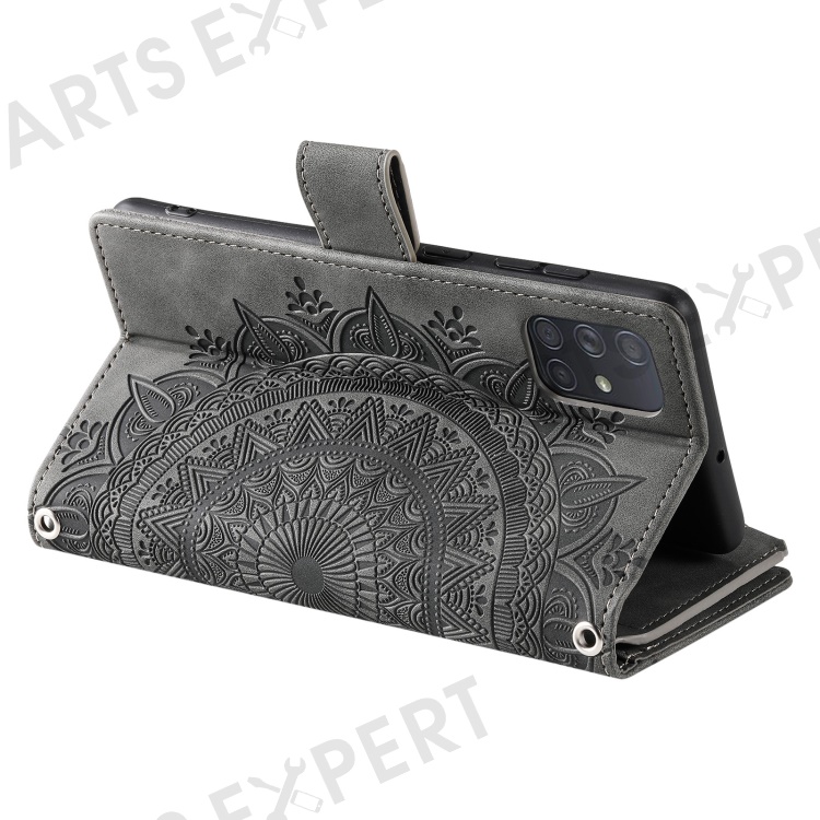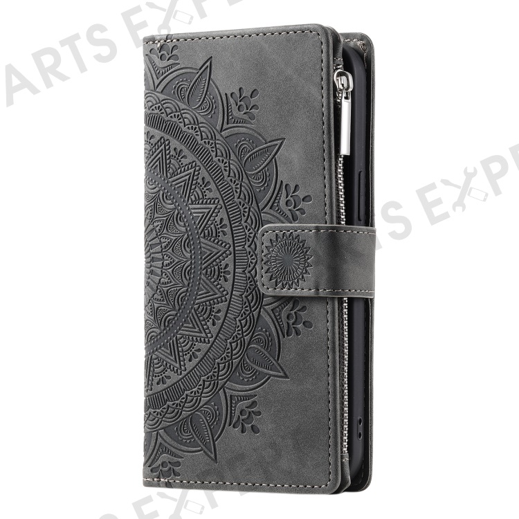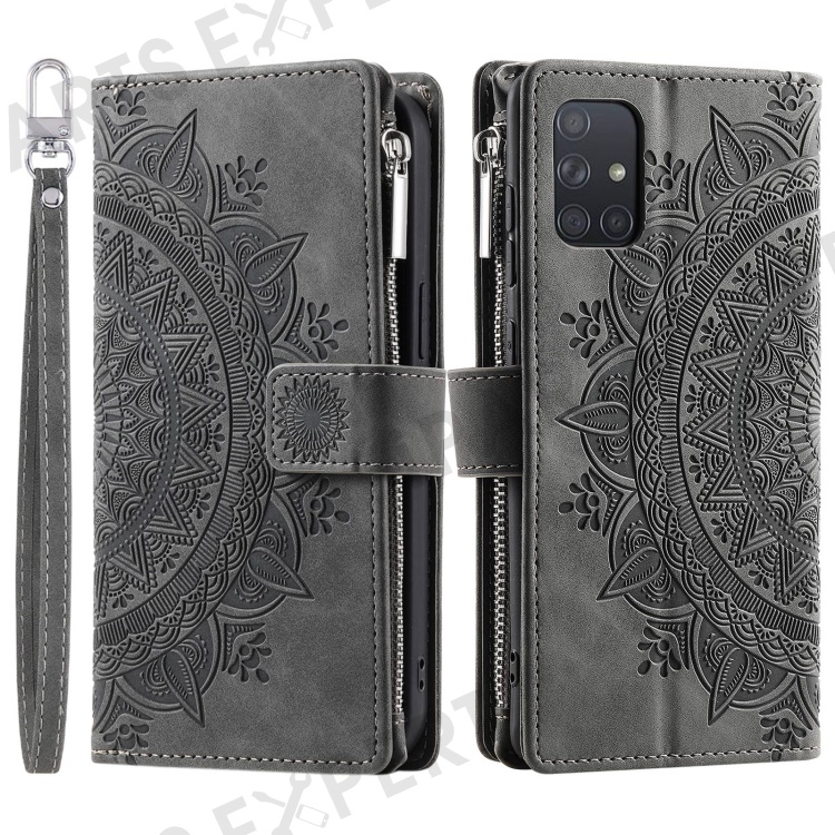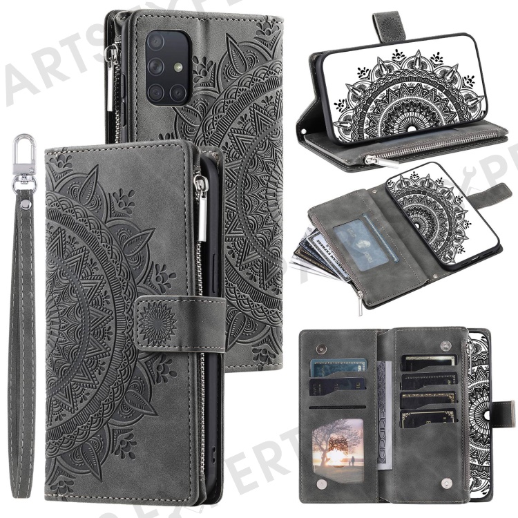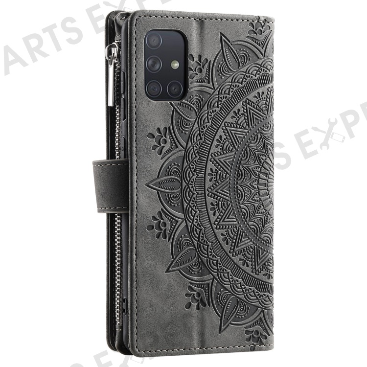 Shockproof Case for Samsung Galaxy A71 4G SM-A715 Multi Card Slot Phone Case Mandala Flower Imprinted PU Leather Cover with Zippered Wallet / Strap - Grey