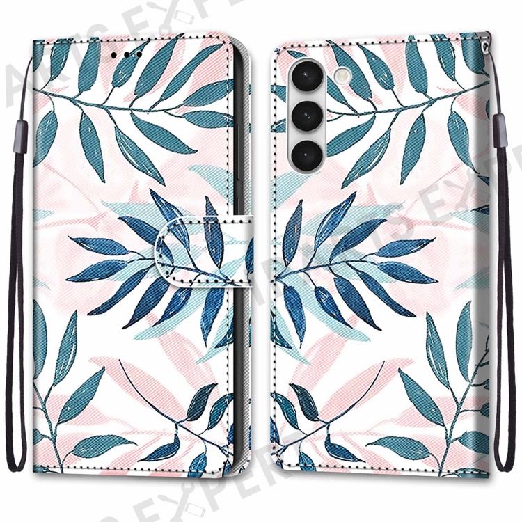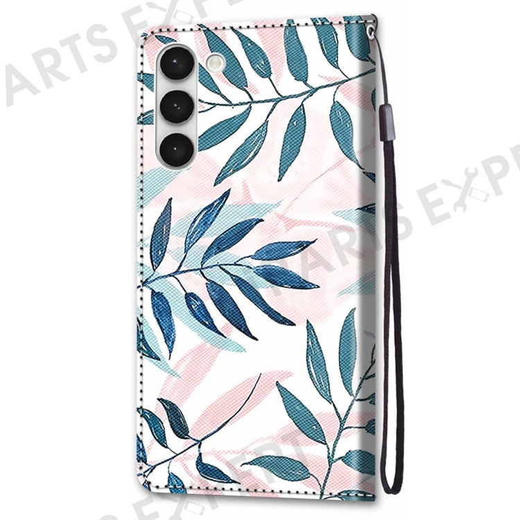 Shockproof Case for Samsung Galaxy S23+ Pattern Printing Wallet Phone Case Anti-Drop Phone Shell PU Leather Folio Flip Cover with Strap / Stand - B06 Pink / Green Leaves