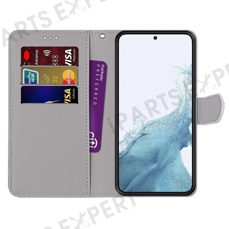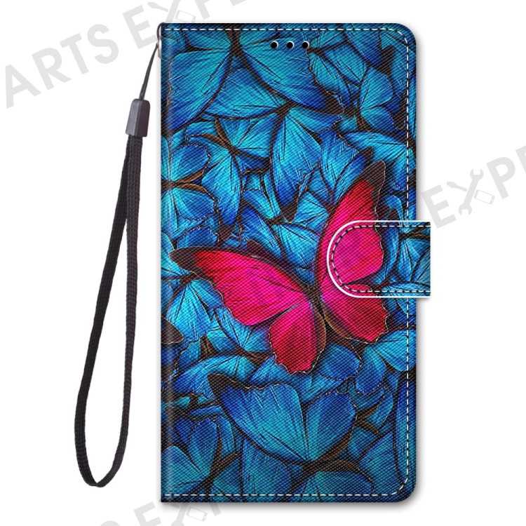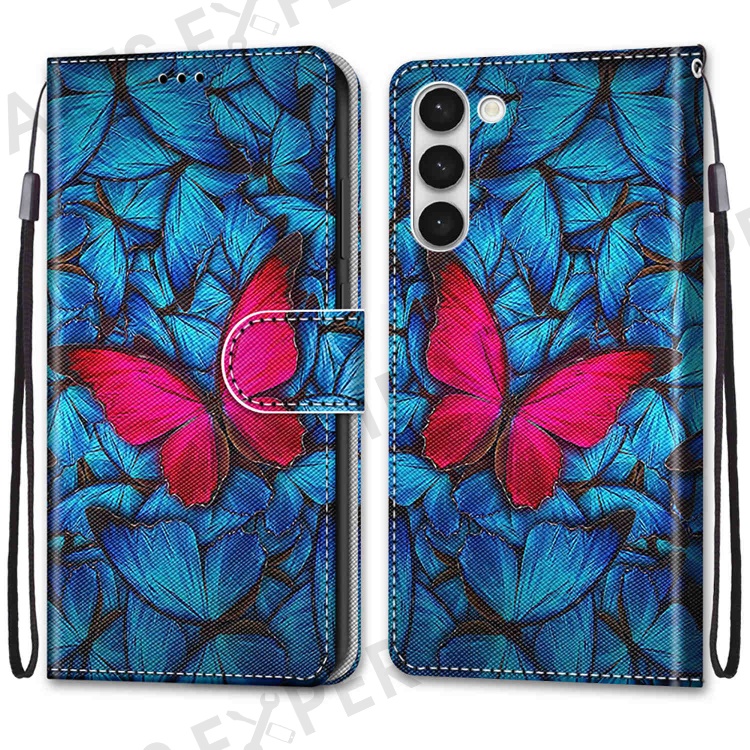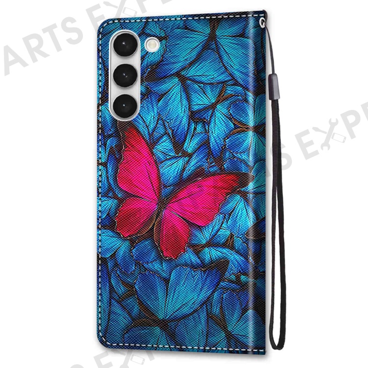 Shockproof Case for Samsung Galaxy S23+ Pattern Printing Wallet Phone Case Anti-Drop Phone Shell PU Leather Folio Flip Cover with Strap / Stand - B14 Big Red Butterfly on Blue