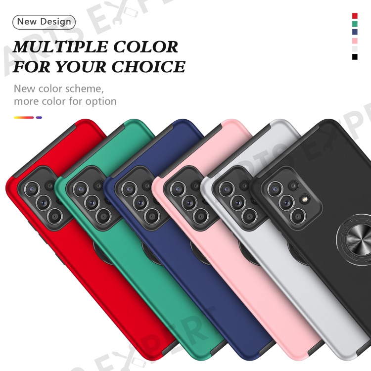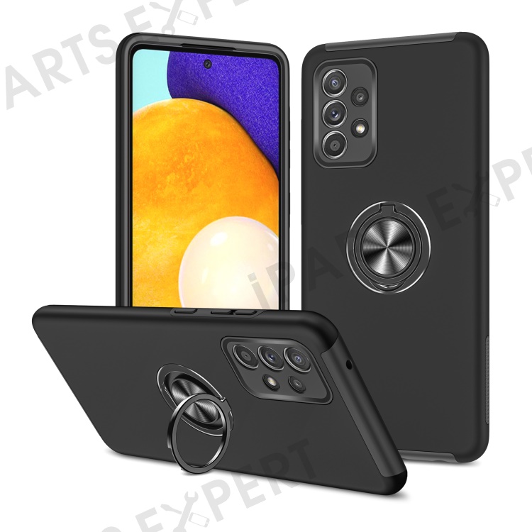 Shockproof Hybrid Phone Case Ring Shape Kickstand Design Cover for Samsung Galaxy A52 5G / 4G - Black