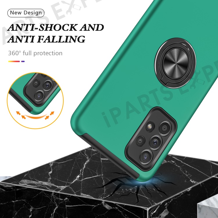 Shockproof Hybrid Phone Case Ring Shape Kickstand Design Cover for Samsung Galaxy A52 5G / 4G - Green
