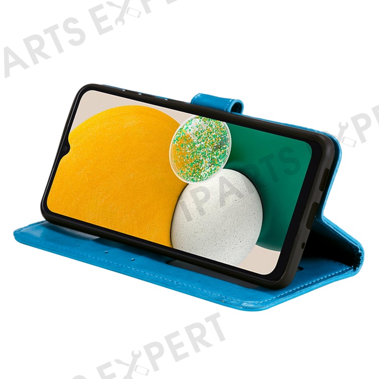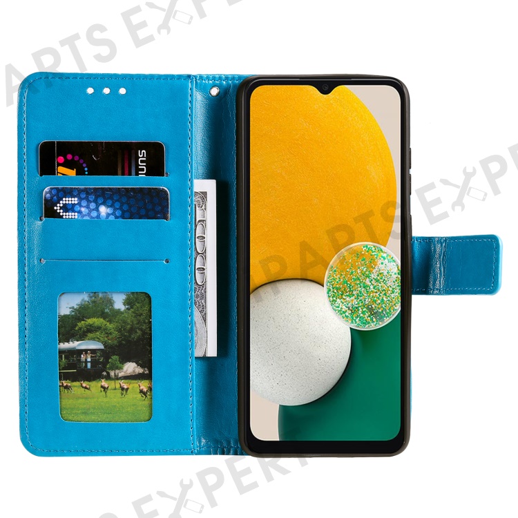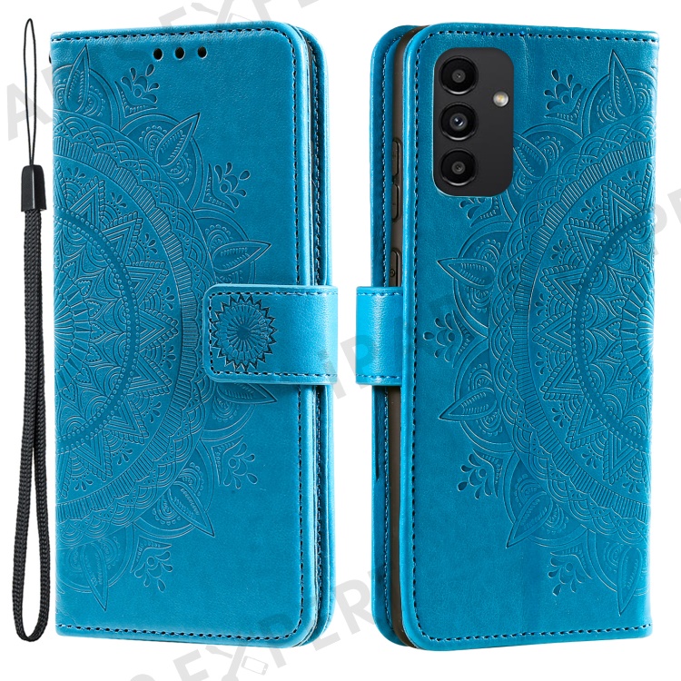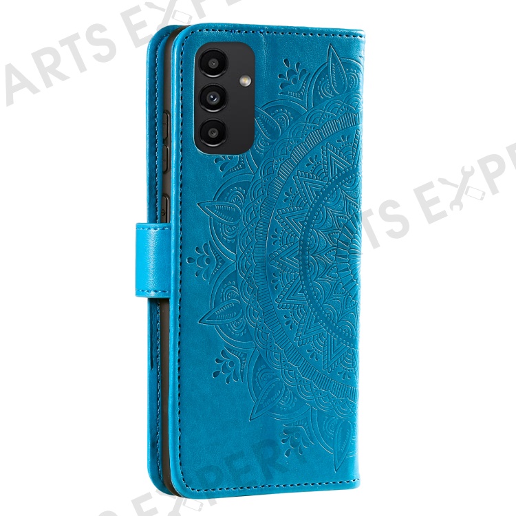 For Samsung Galaxy A13 4G Shockproof Wallet Stand Design Imprinted Mandala Flower PU Leather Phone Flip Cover Case - Blue