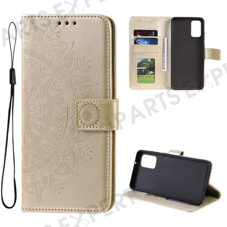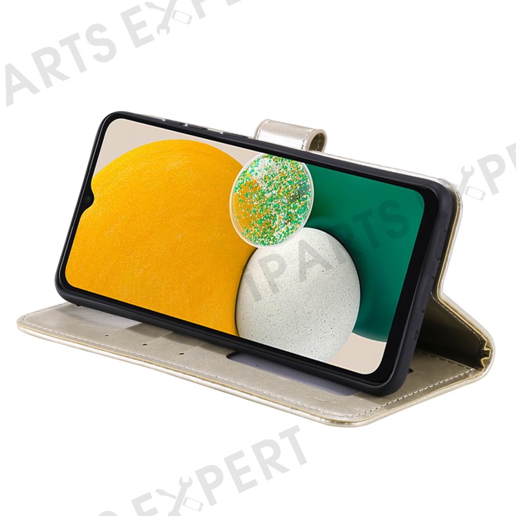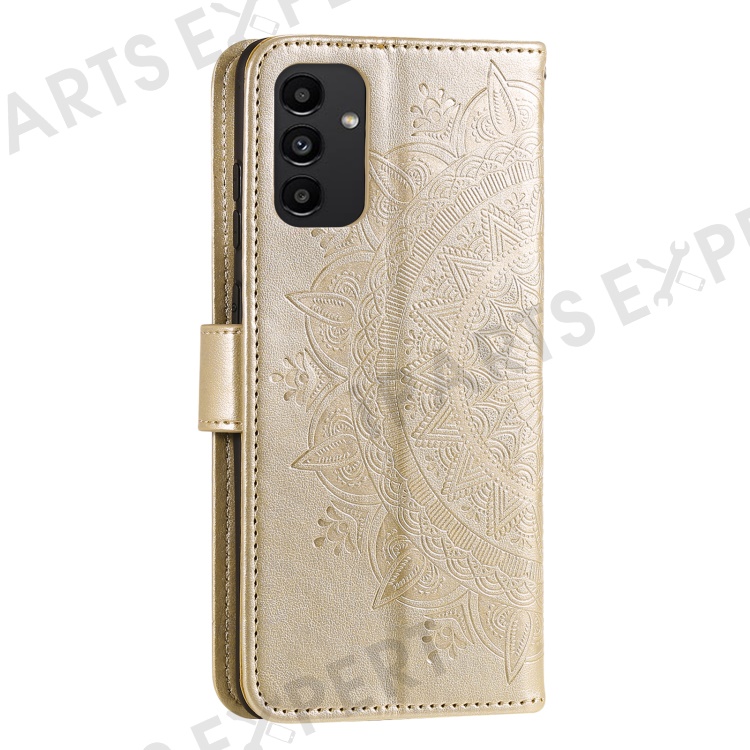 For Samsung Galaxy A13 4G Shockproof Wallet Stand Design Imprinted Mandala Flower PU Leather Phone Flip Cover Case - Gold