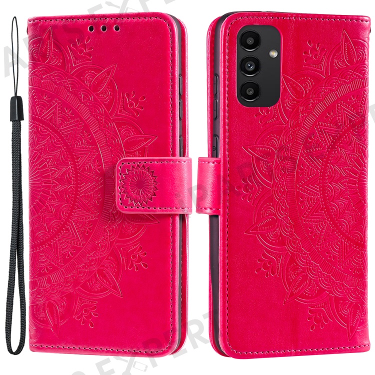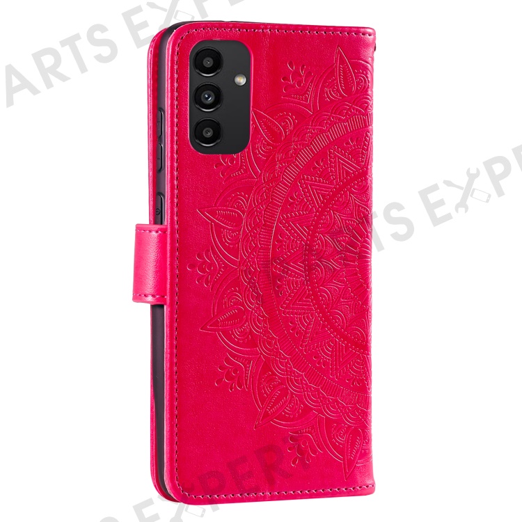 For Samsung Galaxy A13 4G Shockproof Wallet Stand Design Imprinted Mandala Flower PU Leather Phone Flip Cover Case - Red
