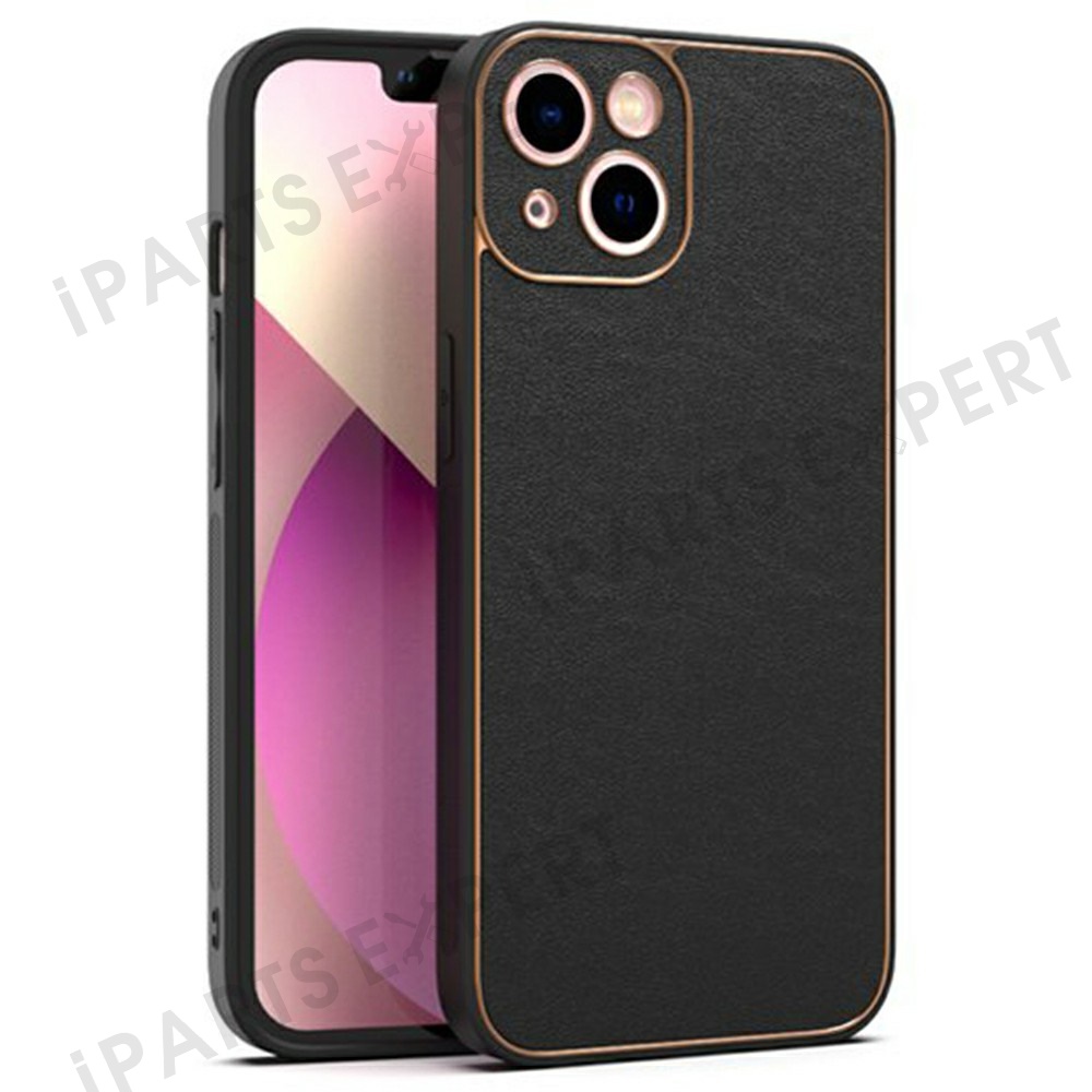 SIMPLY ROAR For iPhone 15 Case PU Leather + TPU Electroplating Phone Cover - Black