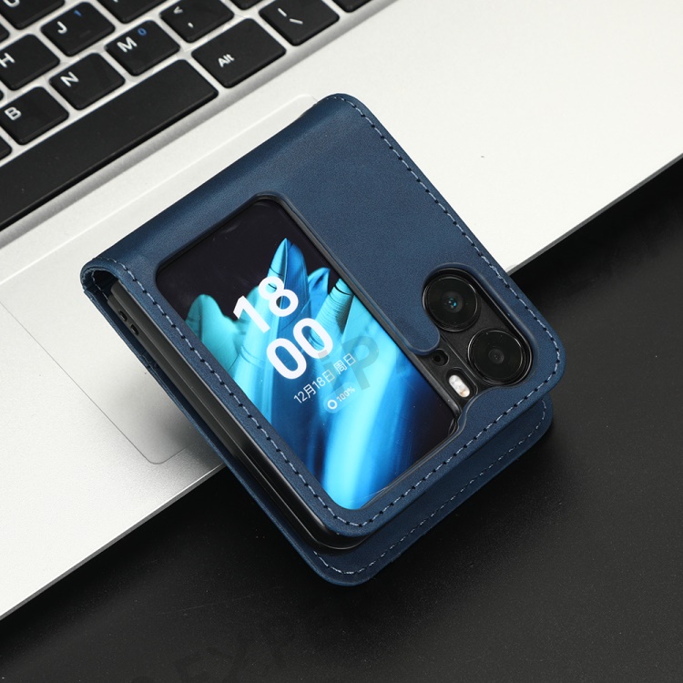 Skin-Touch Phone Case for Oppo Find N2 Flip 5G Separable Design Leather Coated PC Cover with Wallet - Blue