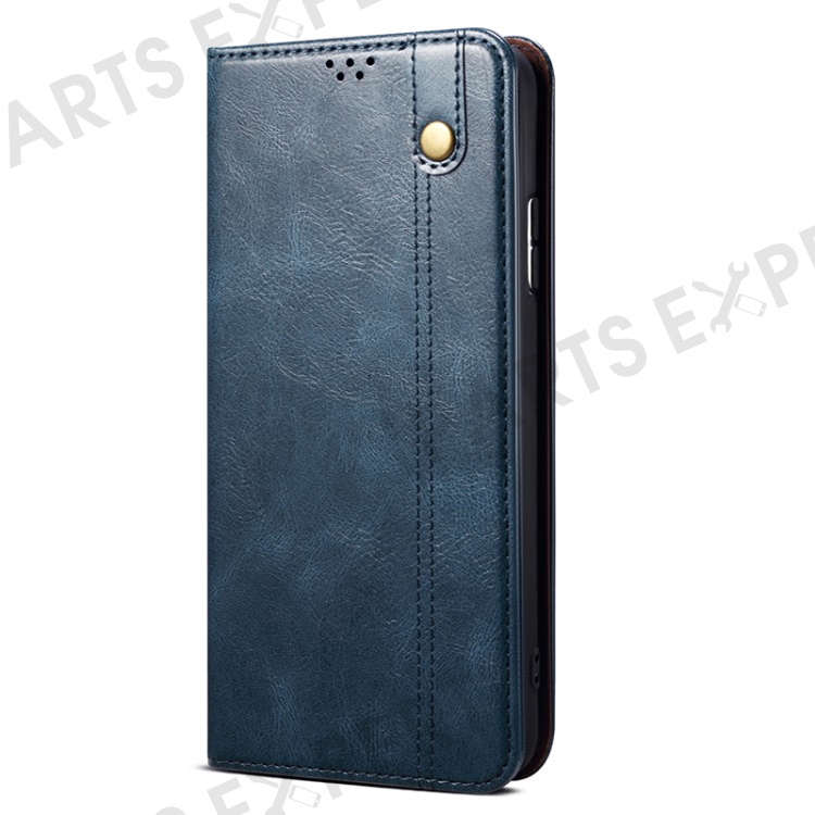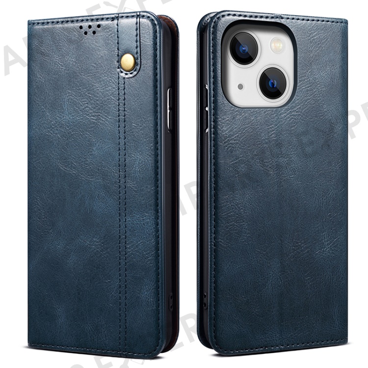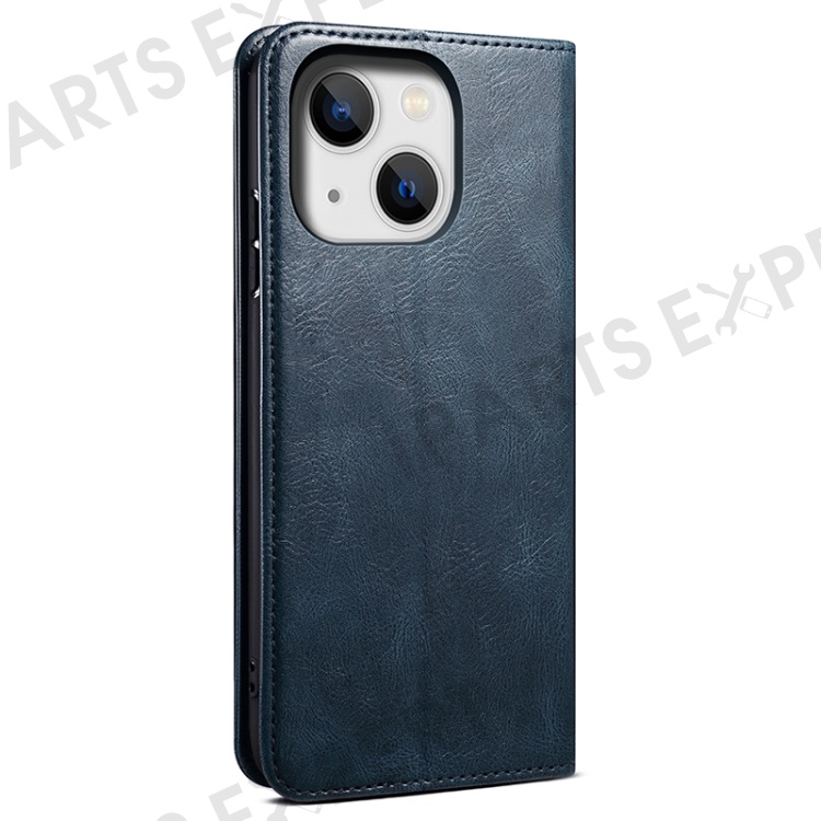 Stand Phone Cover For iPhone 15 Plus , Waxy Crazy Horse Texture Wallet PU Leather Shell Phone Case - Blue
