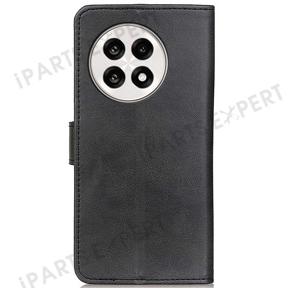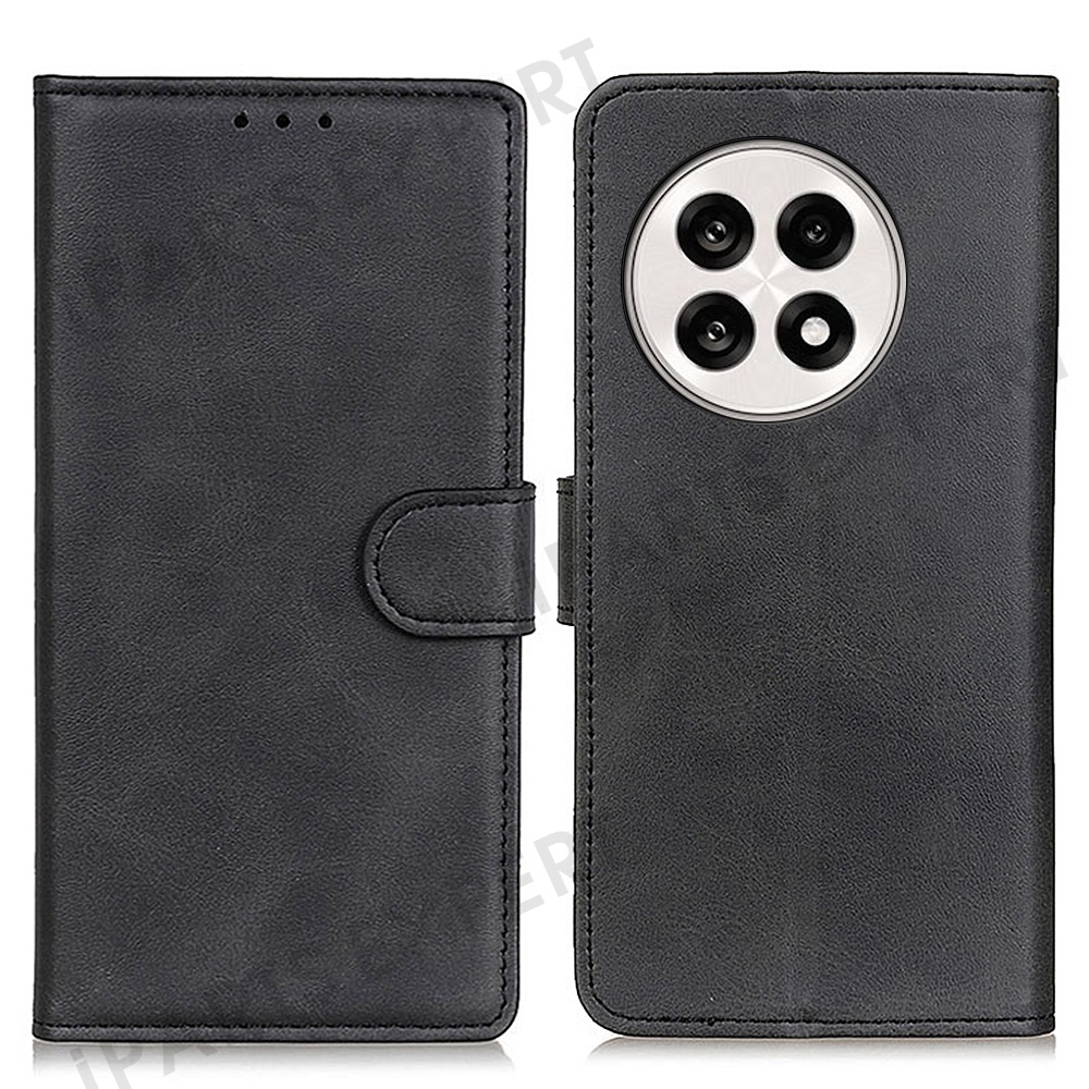 Stand Wallet Phone Case For OnePlus 13R 5G / Ace 5 5G / Ace 5 Pro 5G Cowhide Texture Leather Cover - Black