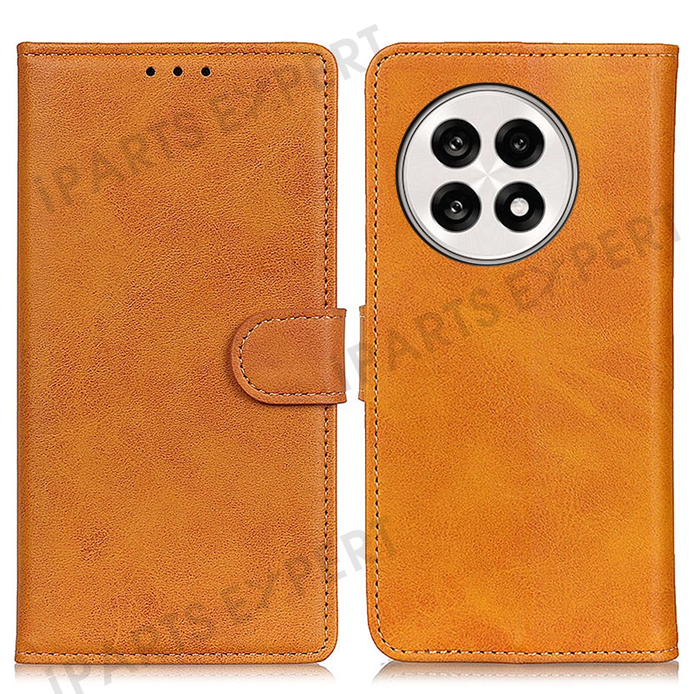 Stand Wallet Phone Case For OnePlus 13R 5G / Ace 5 5G / Ace 5 Pro 5G Cowhide Texture Leather Cover - Brown