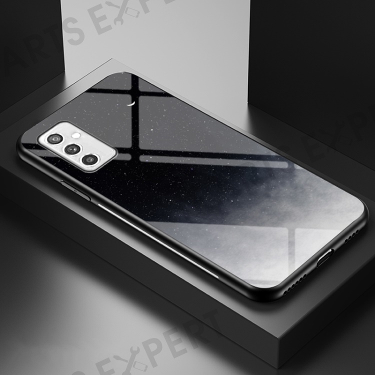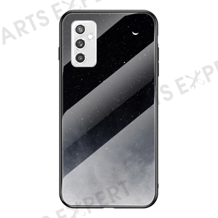 Starry Sky Series Soft TPU Bumper Frame Shockproof Tempered Glass Back Cover for Samsung Galaxy M52 5G - Starry Crescent Moon
