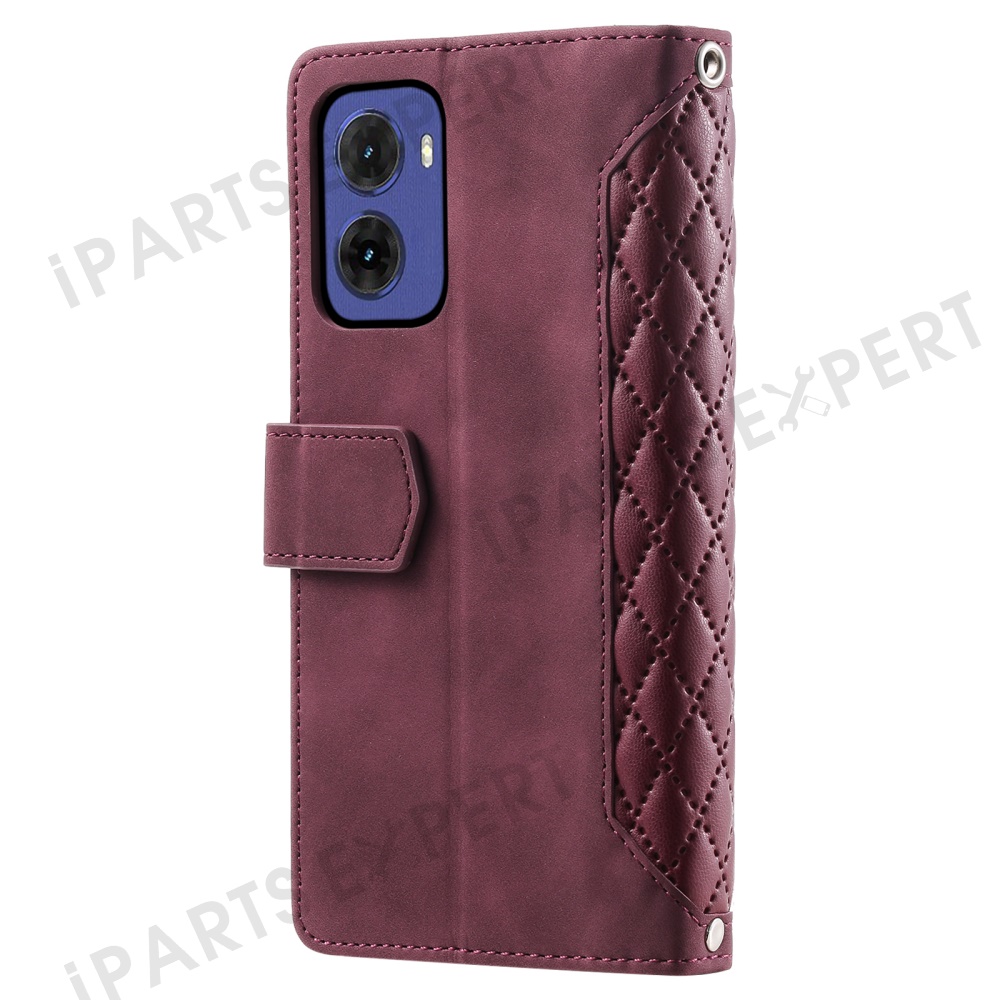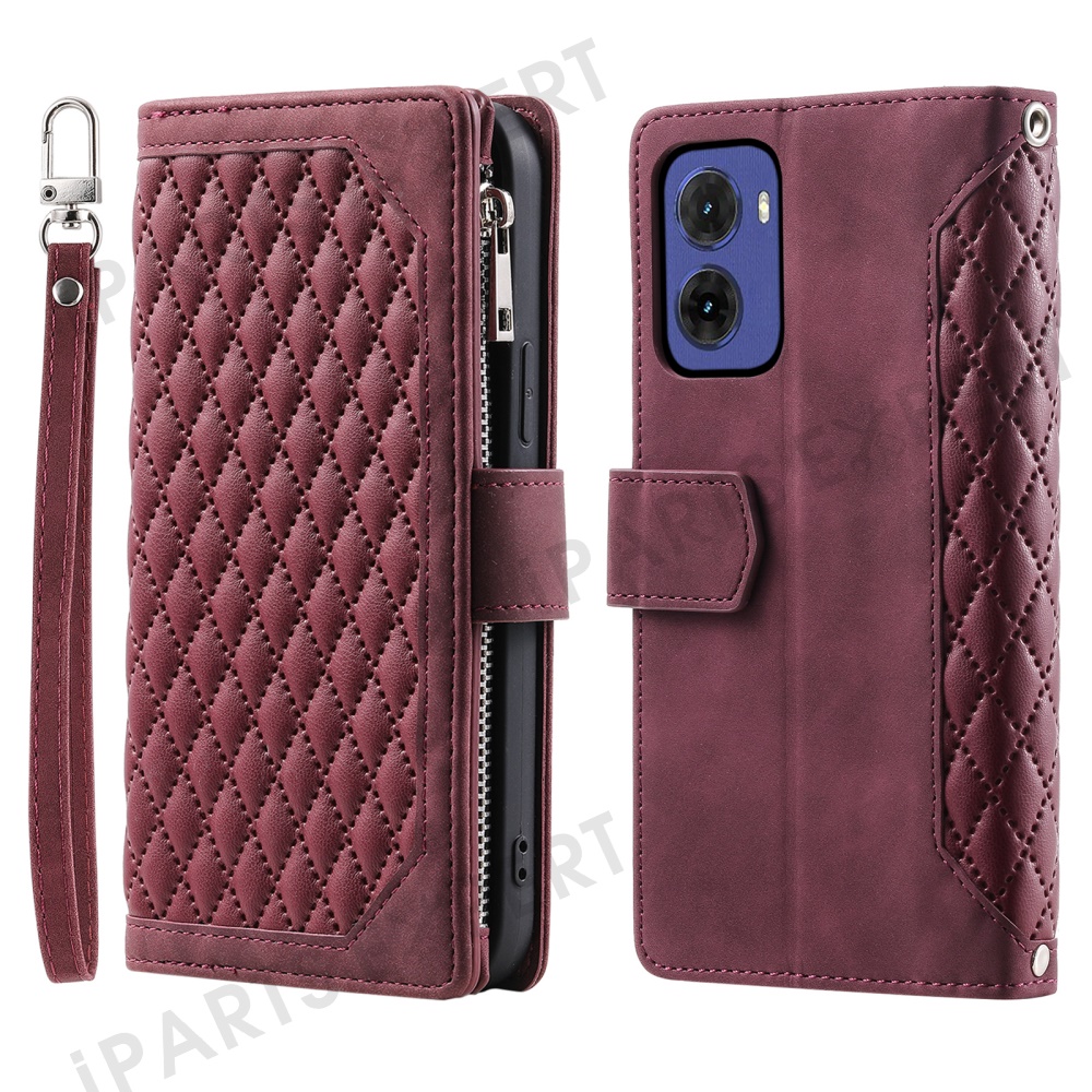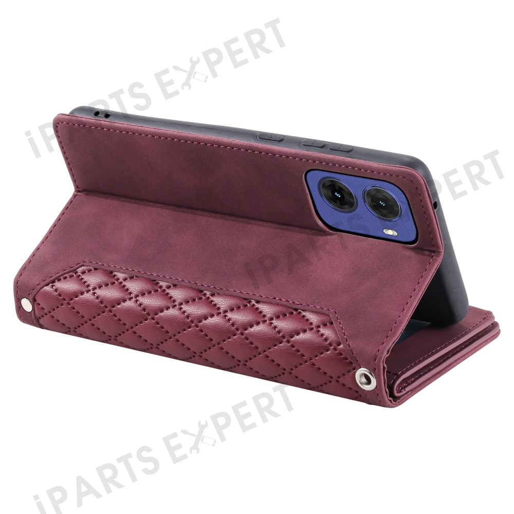 Style 005 For Motorola Moto G05 4G Wallet Case Rhombus Stitching Line PU Leather Phone Cover - Wine Red