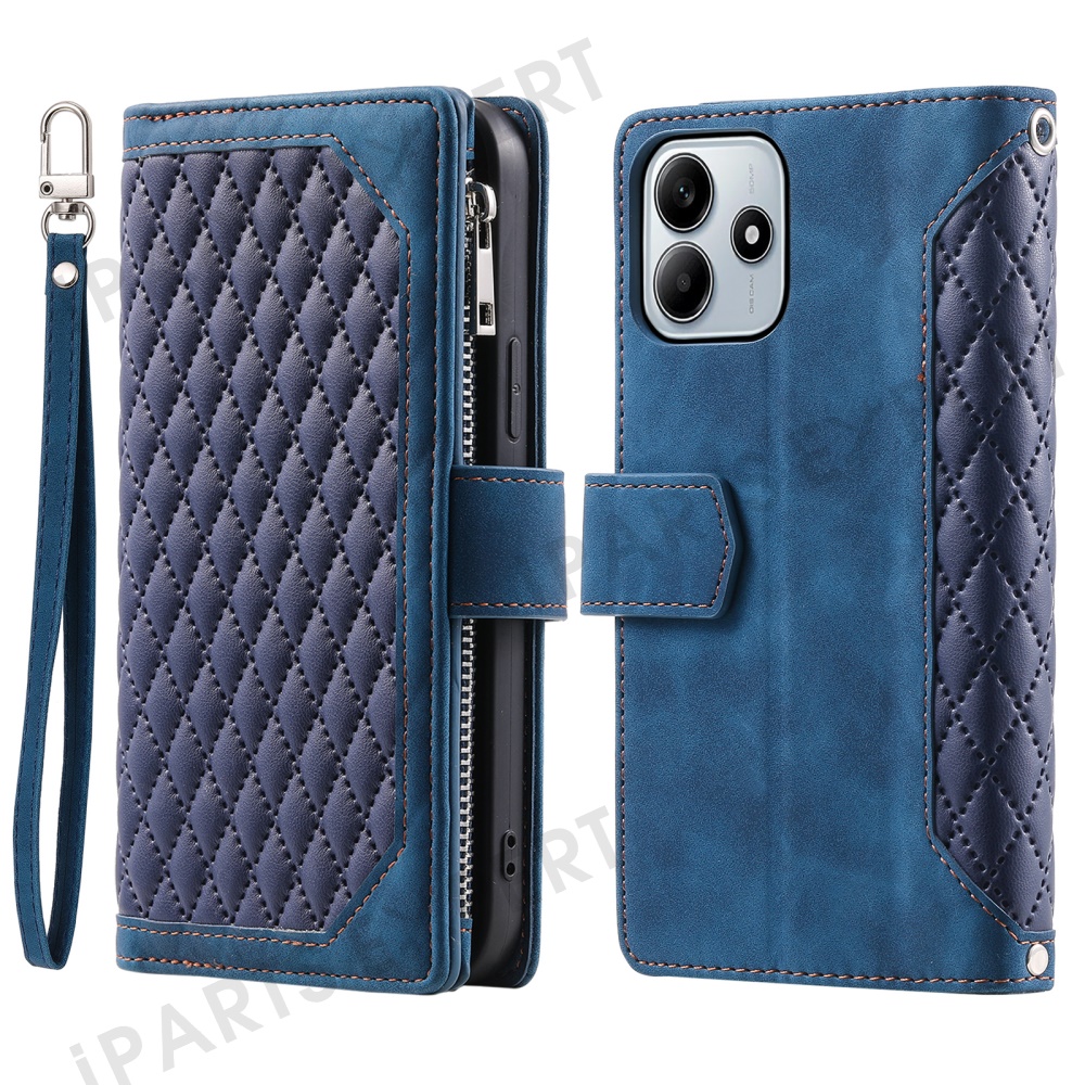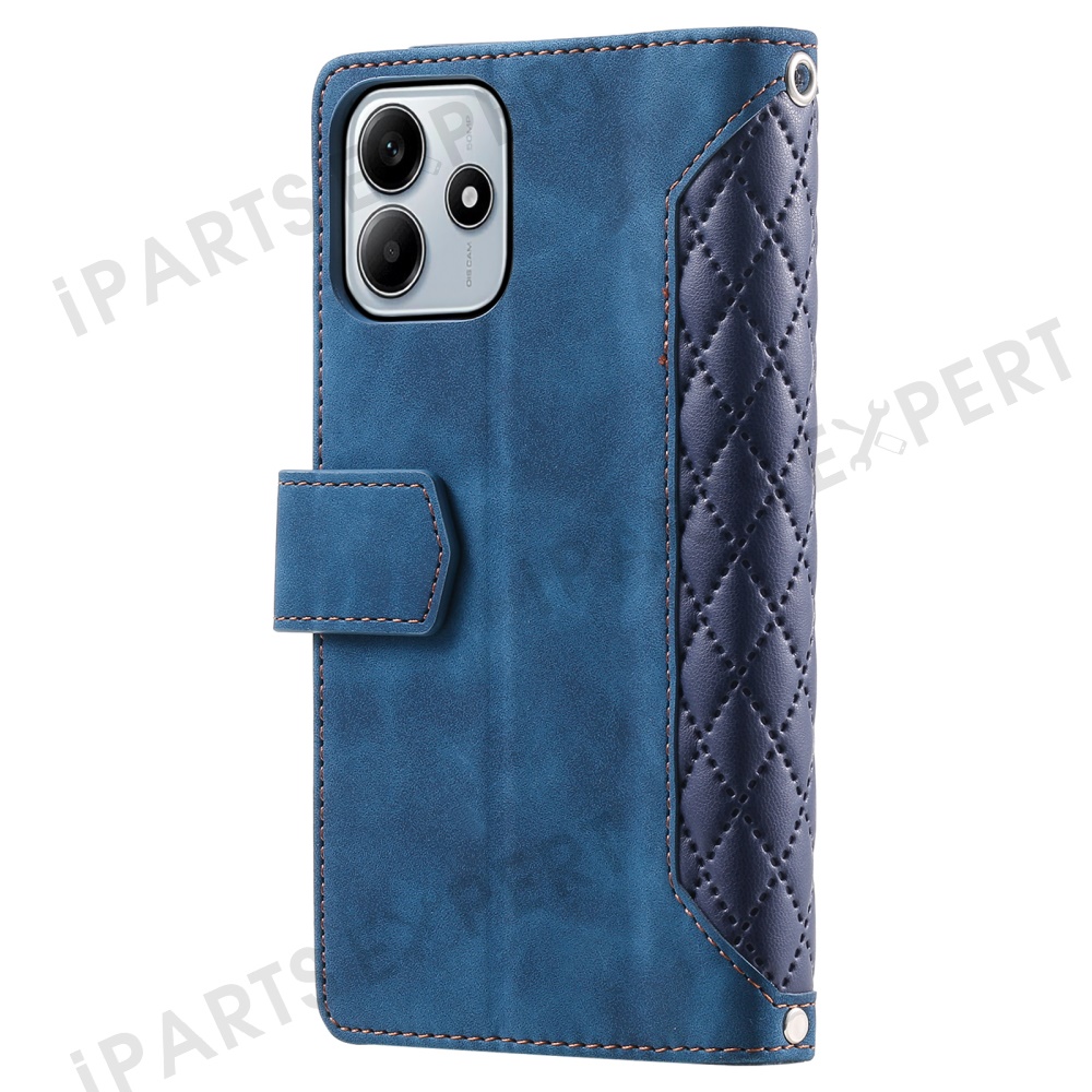 Style 005 For Xiaomi Redmi Note 14 5G Wallet Case Rhombus Stitching Line PU Leather Phone Cover - Blue