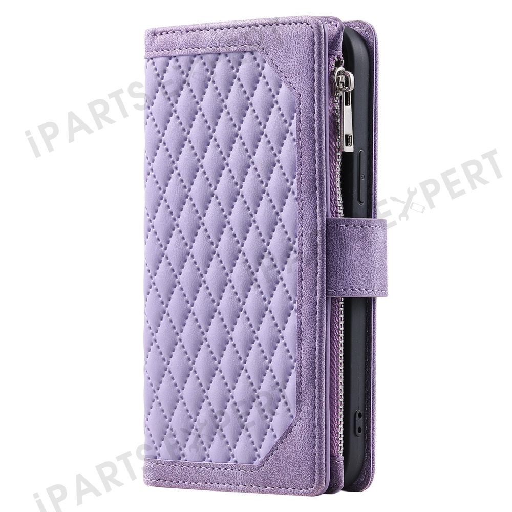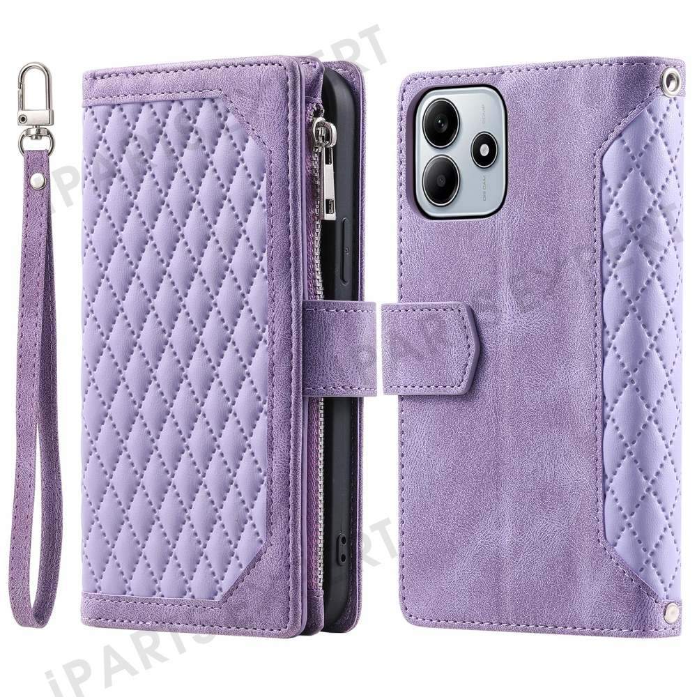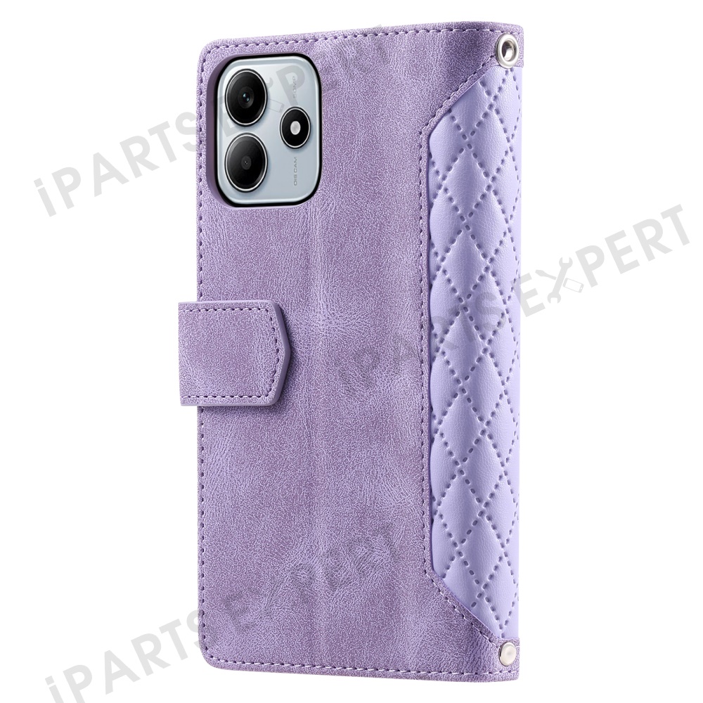 Style 005 For Xiaomi Redmi Note 14 5G Wallet Case Rhombus Stitching Line PU Leather Phone Cover - Purple