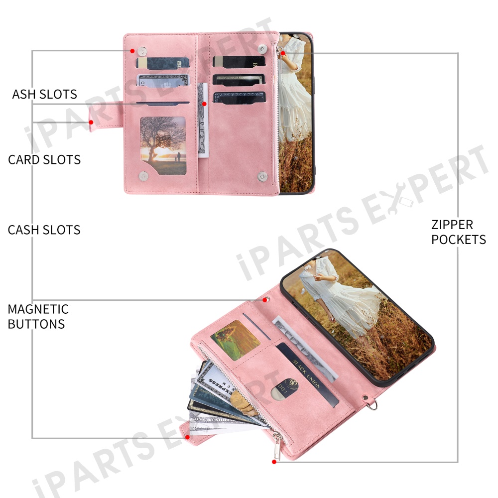 - 【Wallet Function】Designed with multiple card slots and a cash holder, it also includes a zipper pocket, making it easy to hold essential cards, coins, and cash