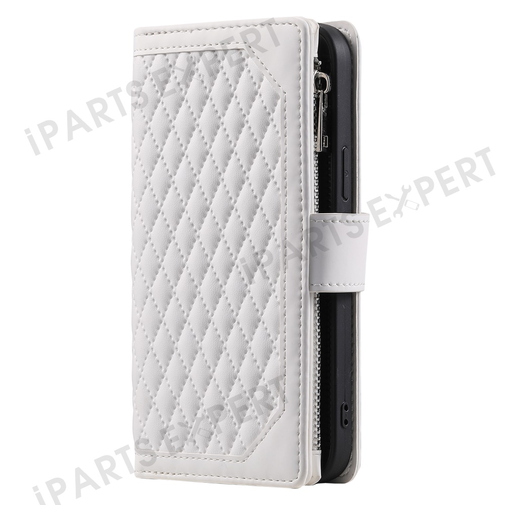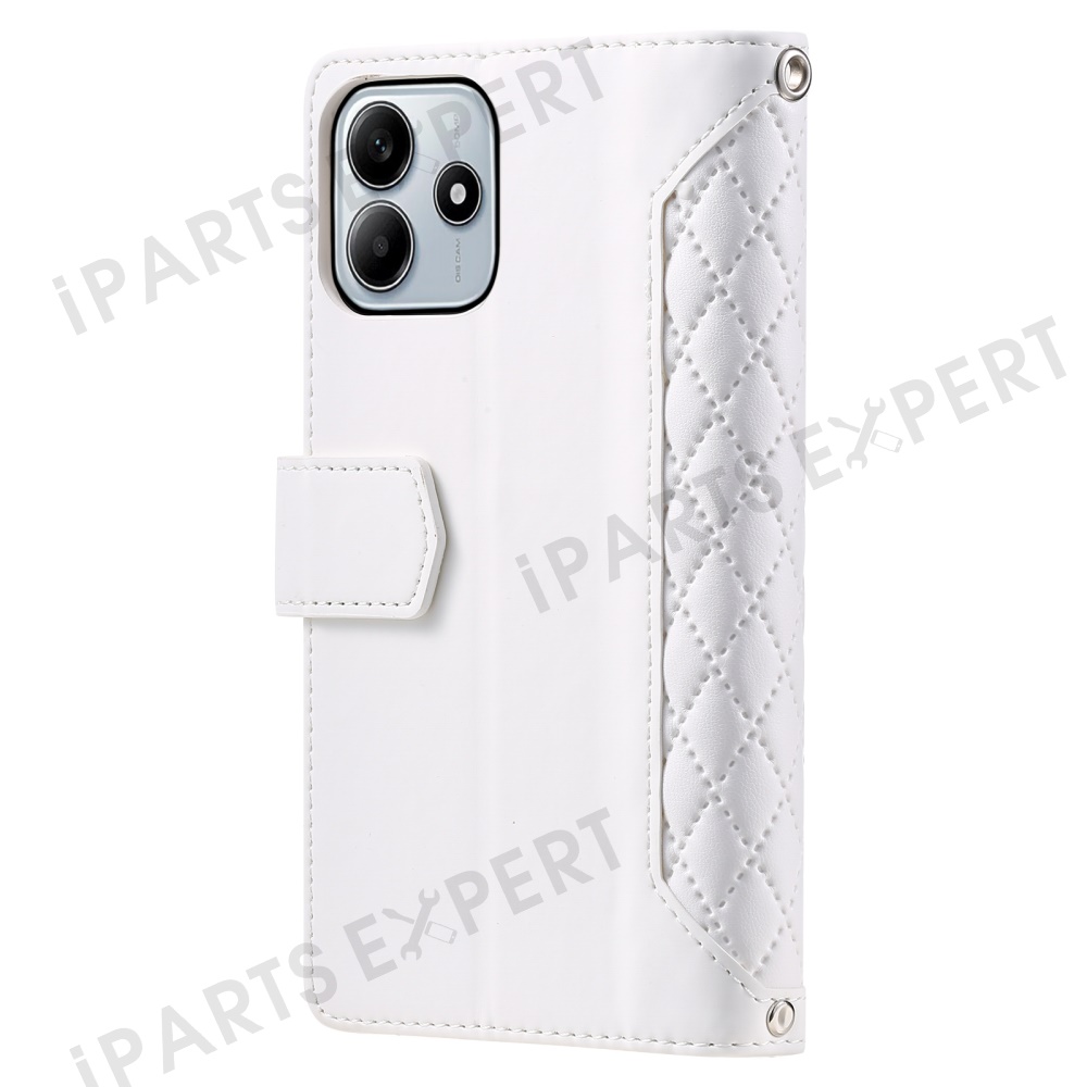 Style 005 For Xiaomi Redmi Note 14 5G Wallet Case Rhombus Stitching Line PU Leather Phone Cover - White