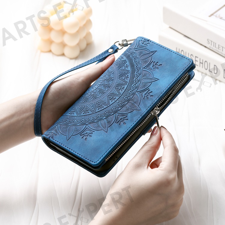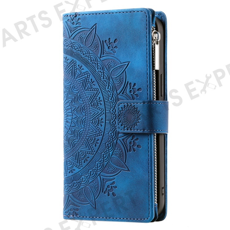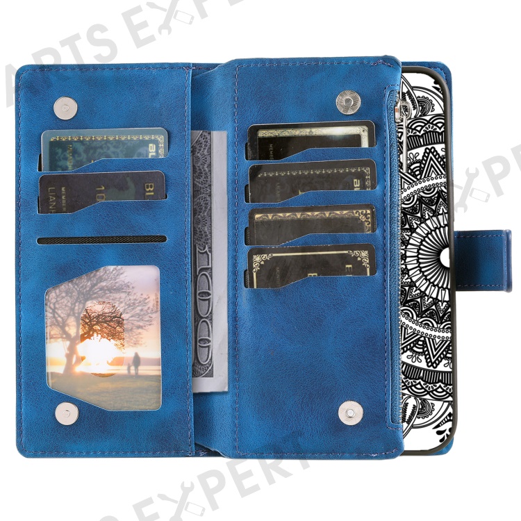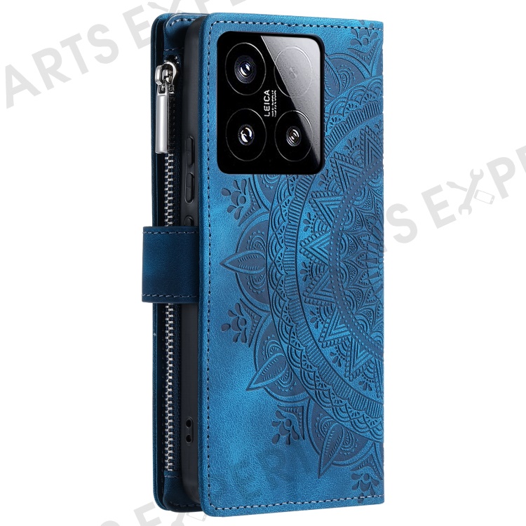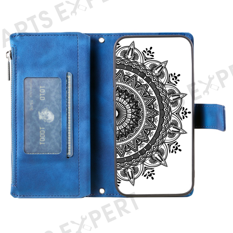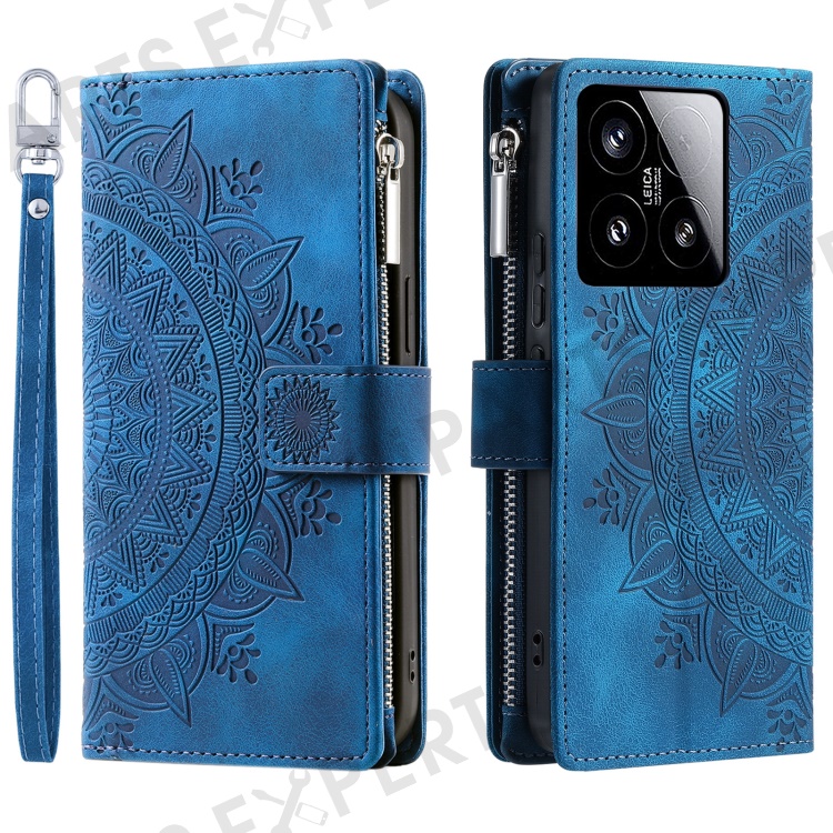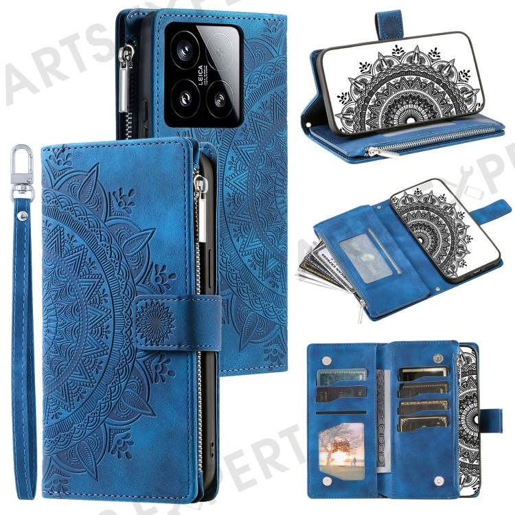 Style 006 For Xiaomi 15 Wallet Case PU Leather Phone Cover Mandala Flower Pattern - Blue