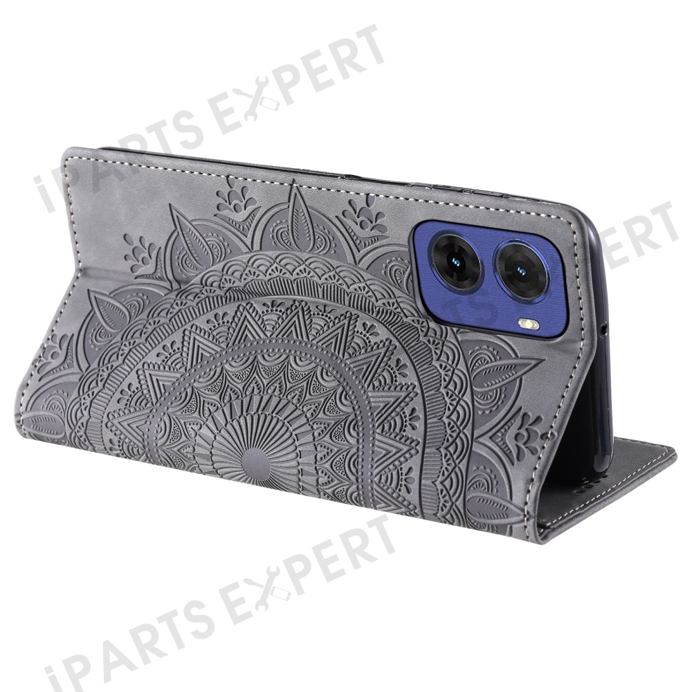 Style-010 For Motorola Moto G05 4G Case Magnetic Closing Leather Phone Cover Pattern Imprinted - Grey