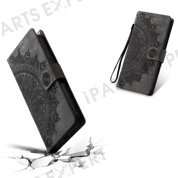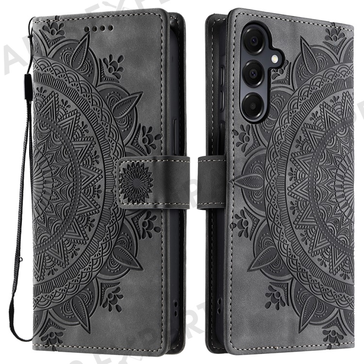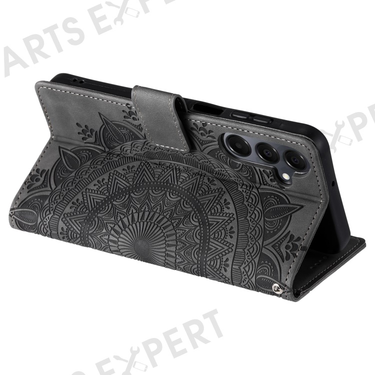 Style 018 For Samsung Galaxy A26 5G Case Imprinted Totem Skin Feel Wallet Leather Phone Cover - Grey