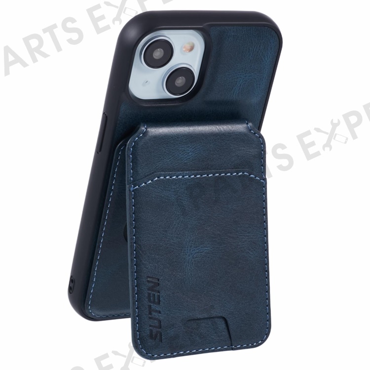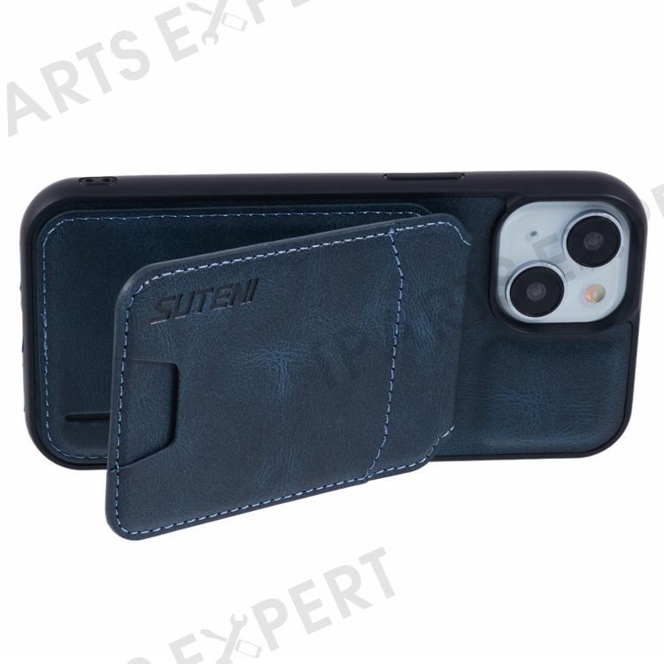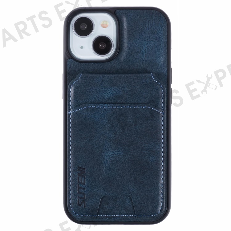 SUTENI H02 For iPhone 15 Case Waxy Texture Leather+TPU Card Slots Kickstand Phone Cover - Blue