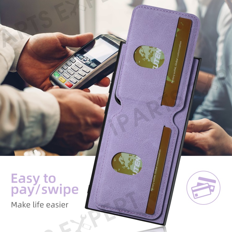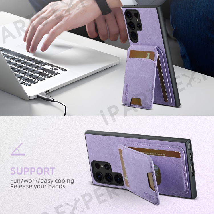 SUTENI H02 For Samsung Galaxy S23 Ultra Kickstand Case Card Slots Leather Back Cover - Purple