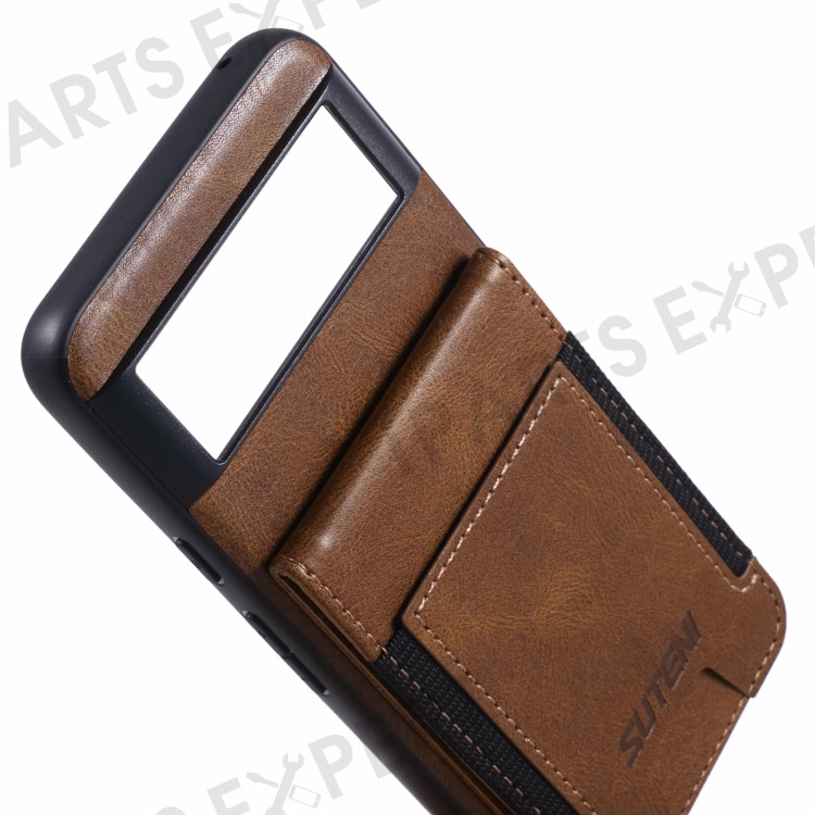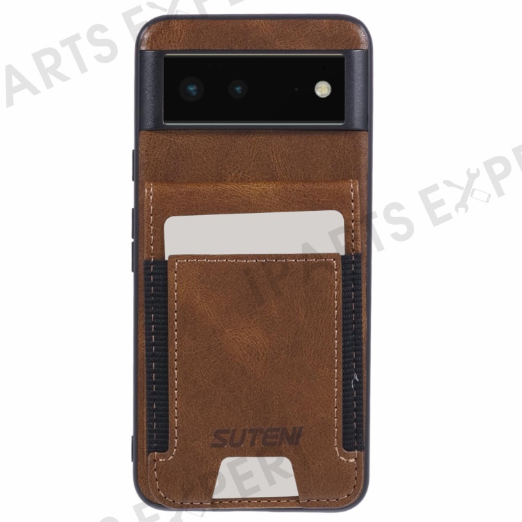 SUTENI H03 For Google Pixel 6 Case Kickstand Leather+TPU Case - Brown