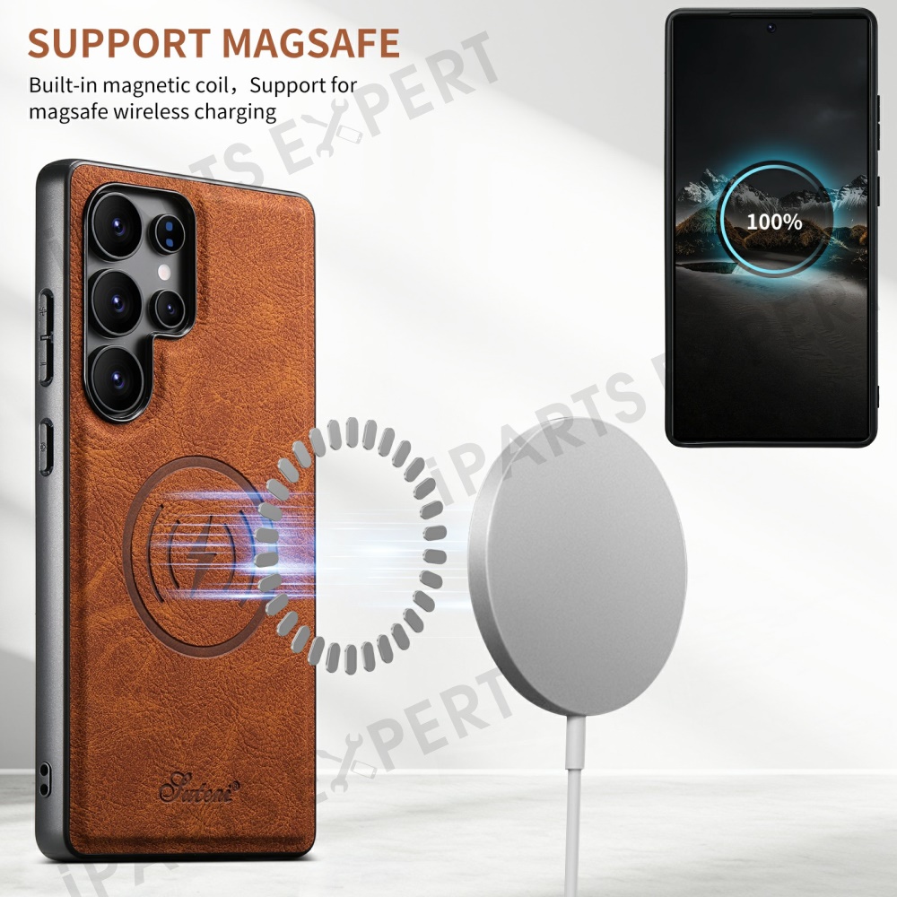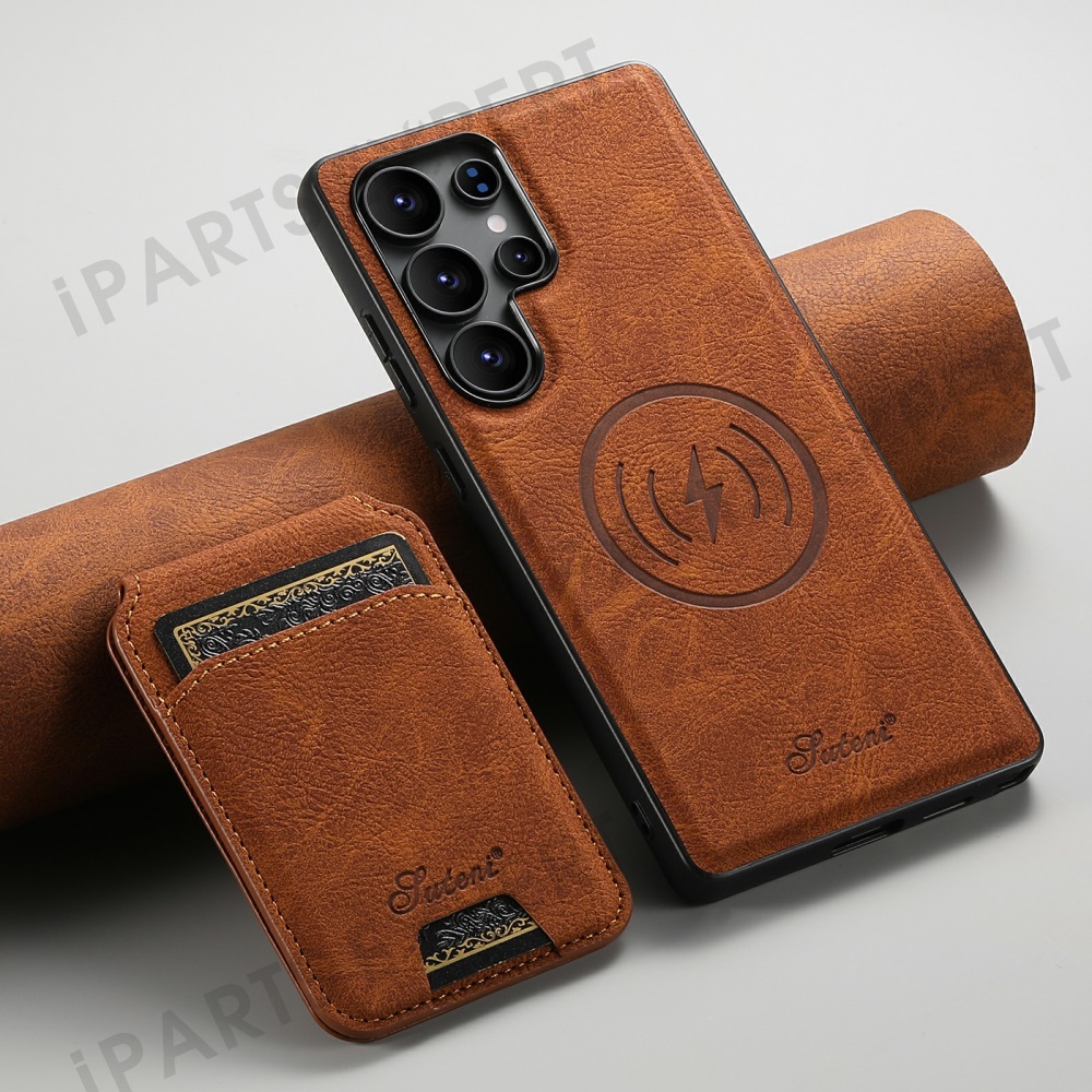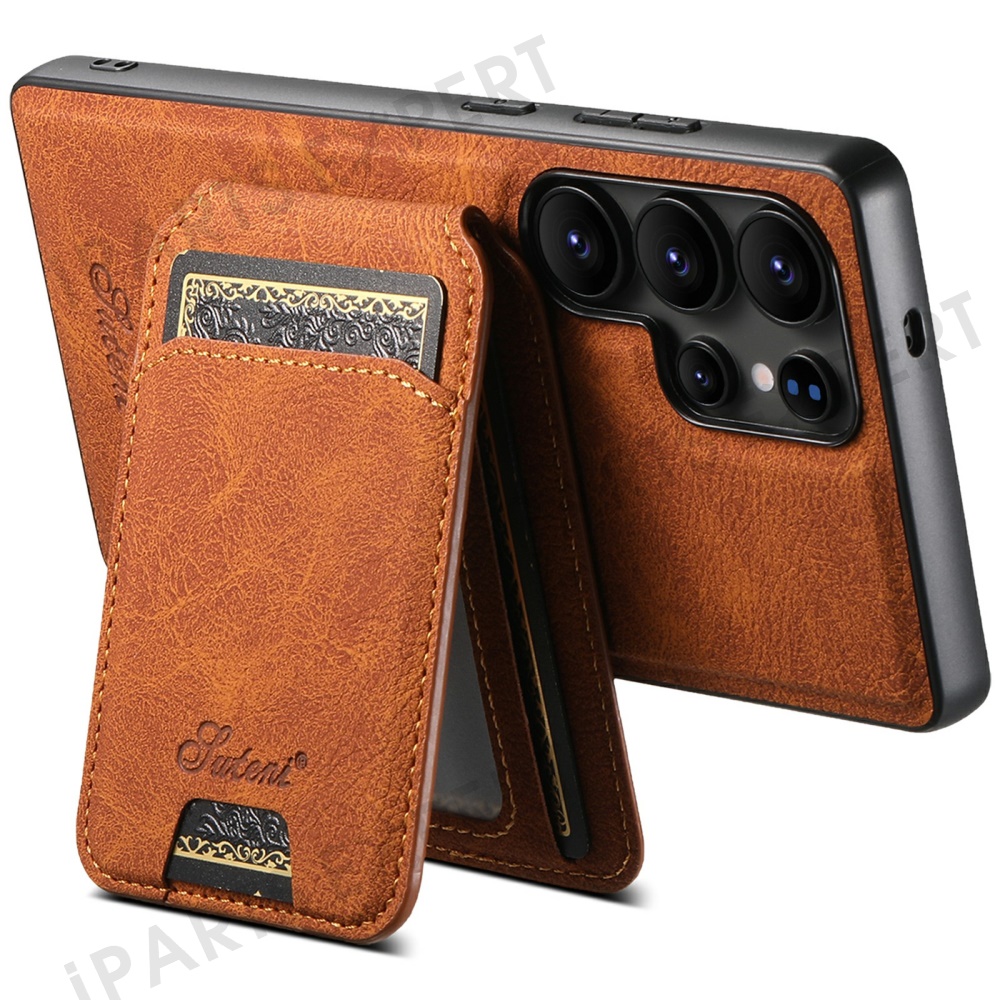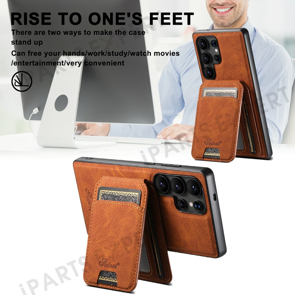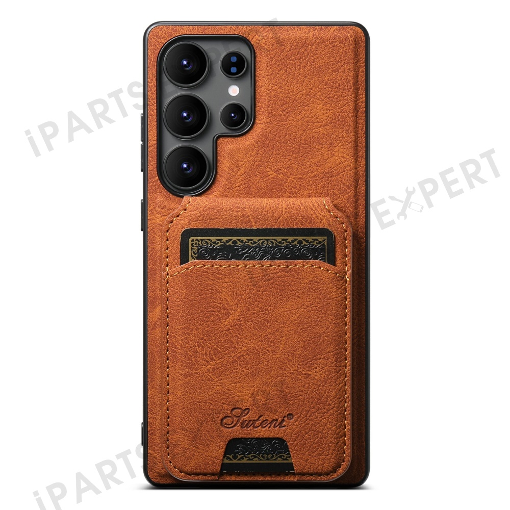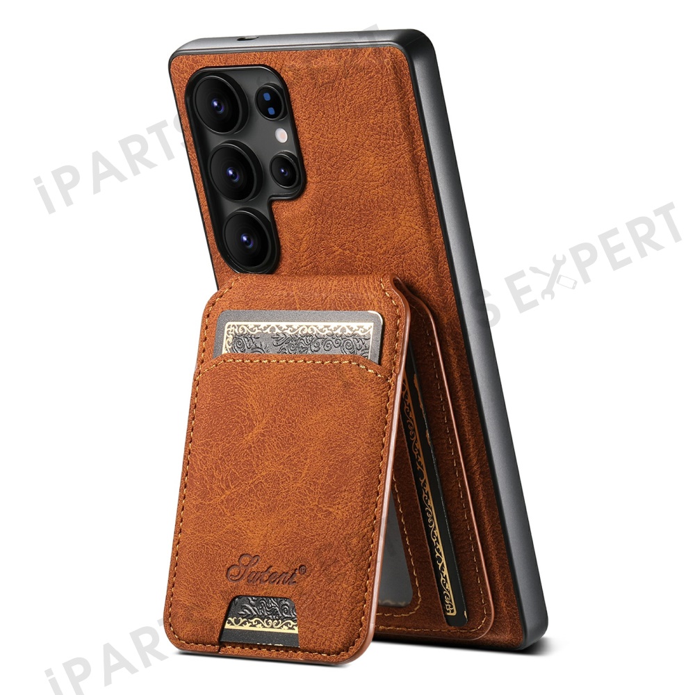 SUTENI H16 For Samsung Galaxy S25 Ultra Magnetic Case Kickstand Phone Cover Detachable Card Holder - Khaki