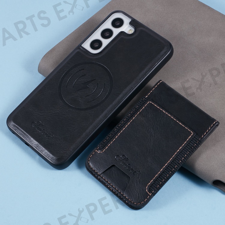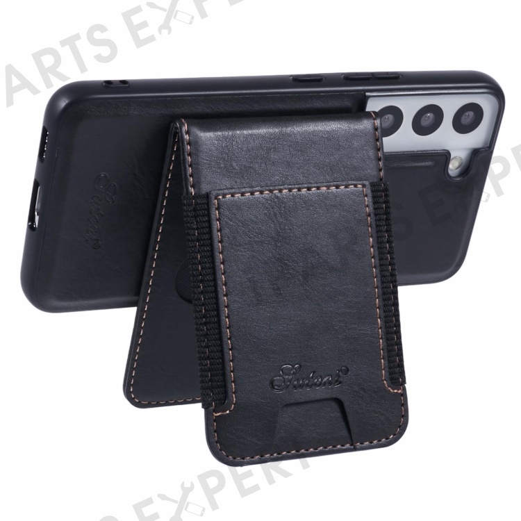 SUTENI H17 For Samsung Galaxy S22 5G Magnetic Case Card Holder Kickstand Phone Cover - Black