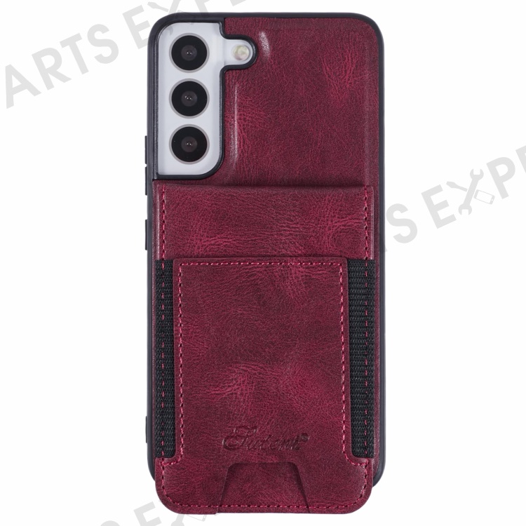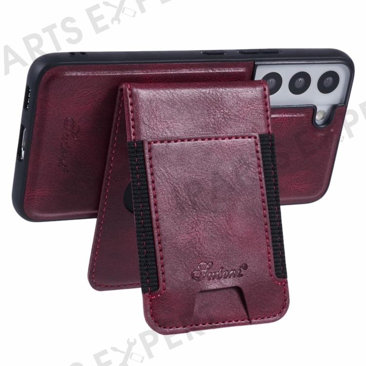 SUTENI H17 For Samsung Galaxy S22 5G Magnetic Case Card Holder Kickstand Phone Cover - Red