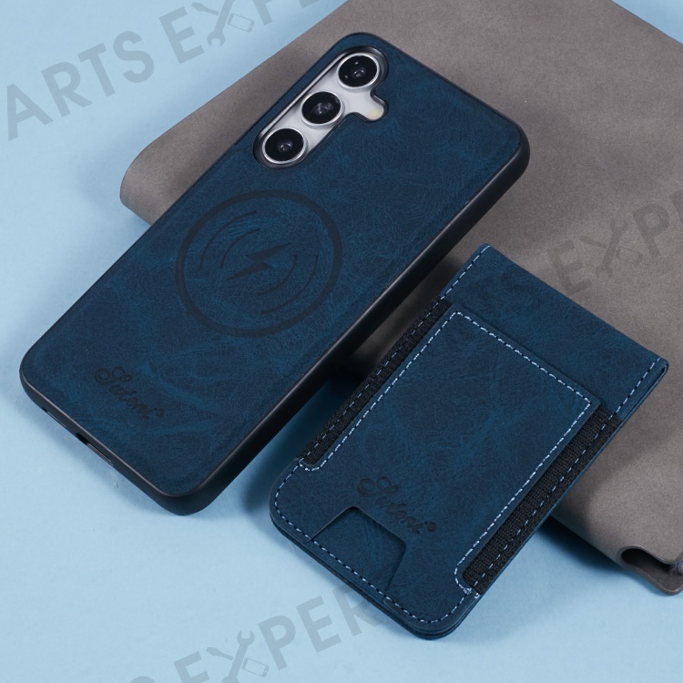 SUTENI H17 For Samsung Galaxy S24+ Magnetic Case Card Slots Leather+TPU Kickstand Phone Cover - Blue