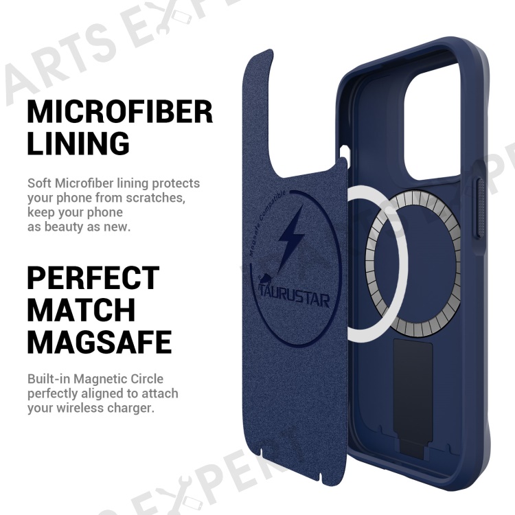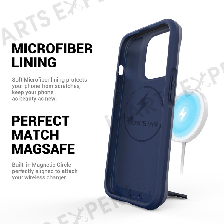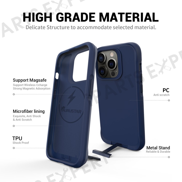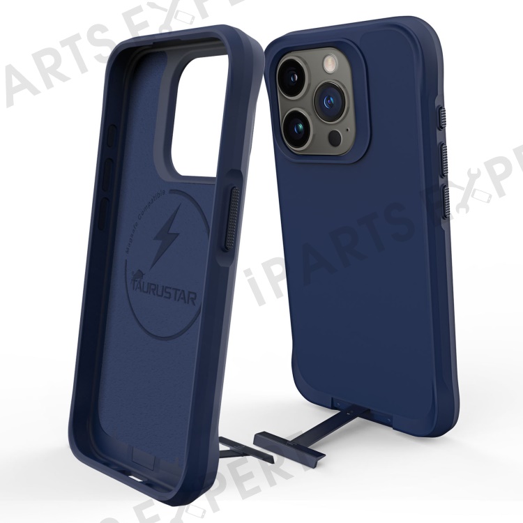 Taurustar Series For iPhone 14 Pro Max / 13 Pro Max Back Cover Compatible with MagSafe Microfiber Lining PC+TPU Phone Kickstand Case - Blue