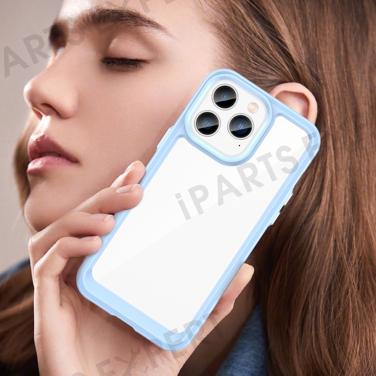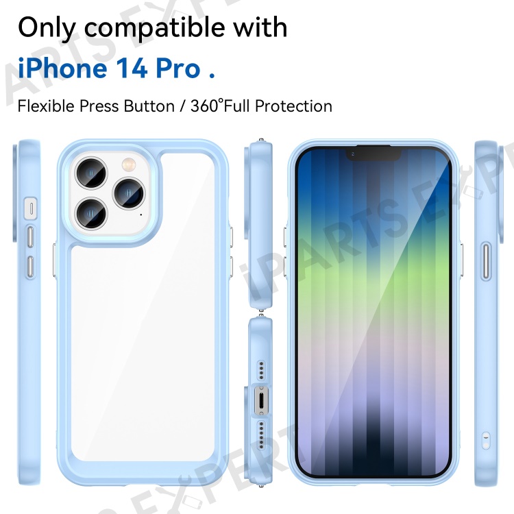 TPU + Acrylic Clear Phone Case for iPhone 14 Pro 6.1 inch, Stylish Anti-drop Anti-fingerprint Cellphone Back Cover - Blue