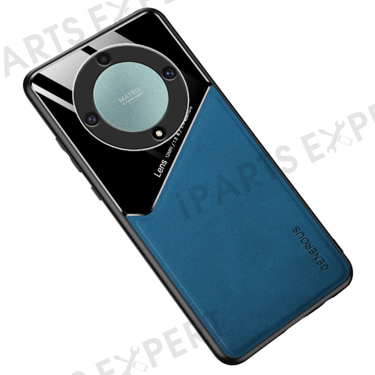 TPU + PC + PU Leather Phone Cover for Honor X9a 5G Slim Phone Case Support Magnetic Car Mount - Blue