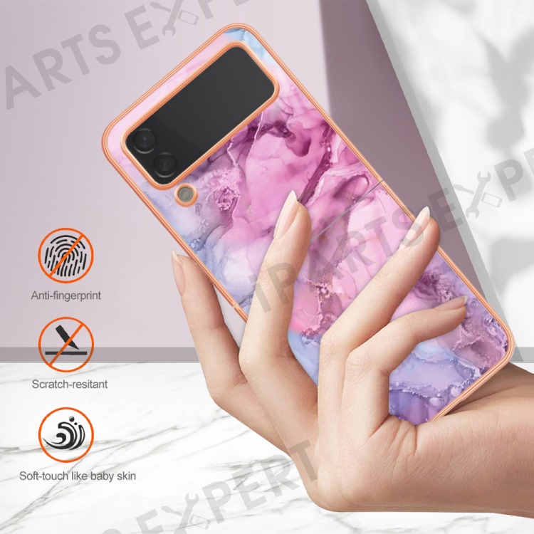 TPU Phone Case for Samsung Galaxy Z Flip4 5G Electroplating Anti-Drop Case YB IMD Series-16 Style E 2.0mm Marble Pattern IMD Back Cover - Rose