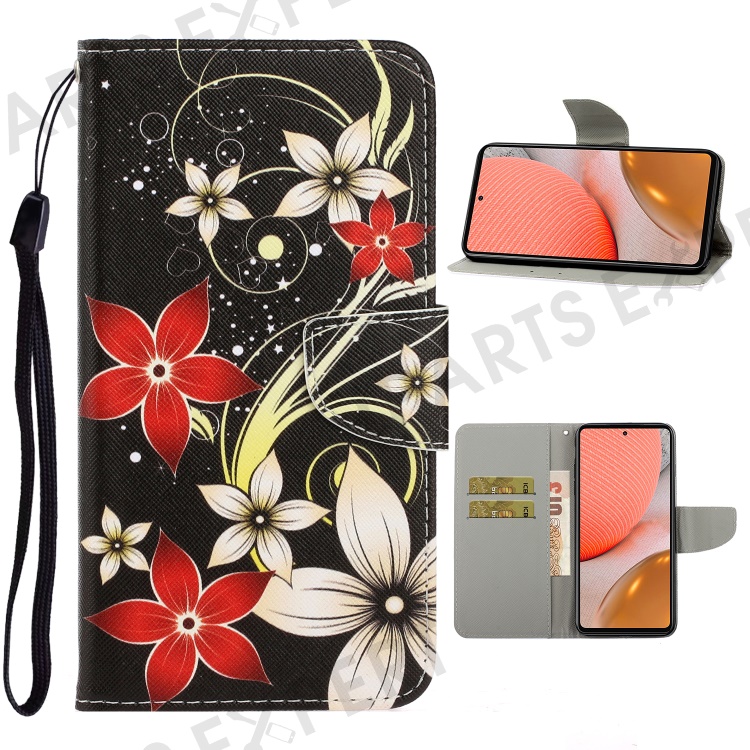 TPU + PU Leather Wallet Stand Phone Case with Lanyard for Samsung Galaxy A72 5G / A72 4G - Flower