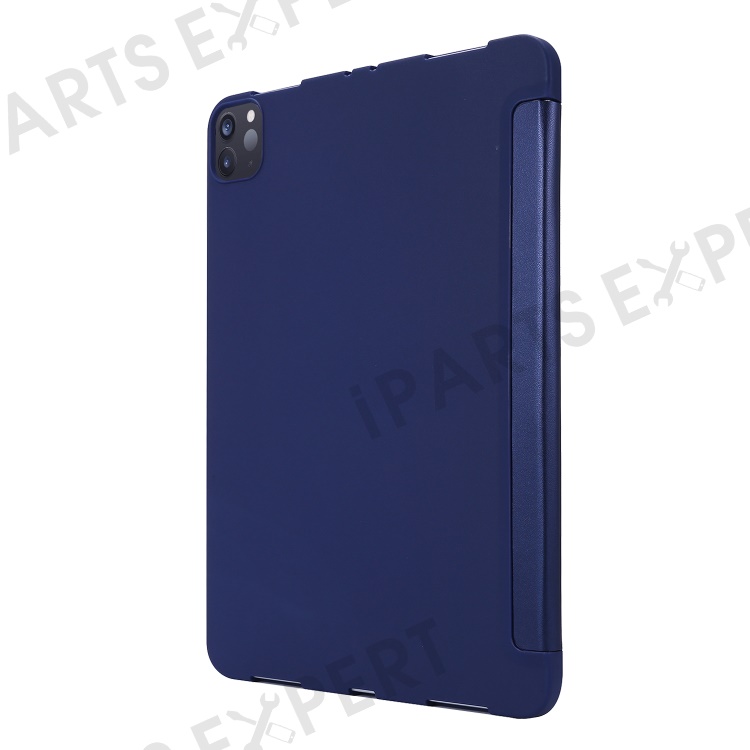 Tri-fold Stand Silicone + PU Leather Tablet Case Cover for iPad Pro 11-inch (2021) - Blue
