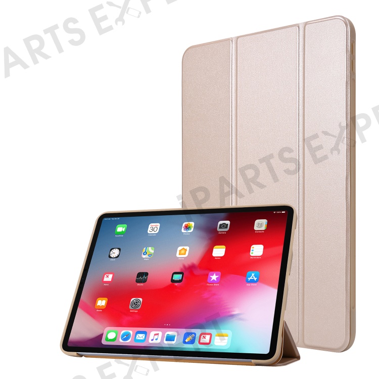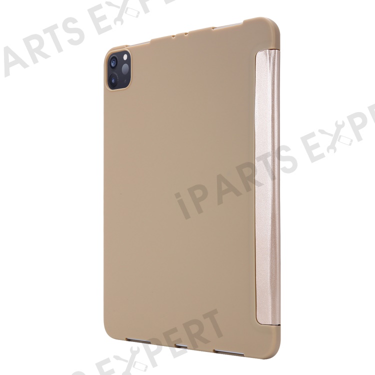 Tri-fold Stand Silicone + PU Leather Tablet Case Cover for iPad Pro 11-inch (2021) - Gold