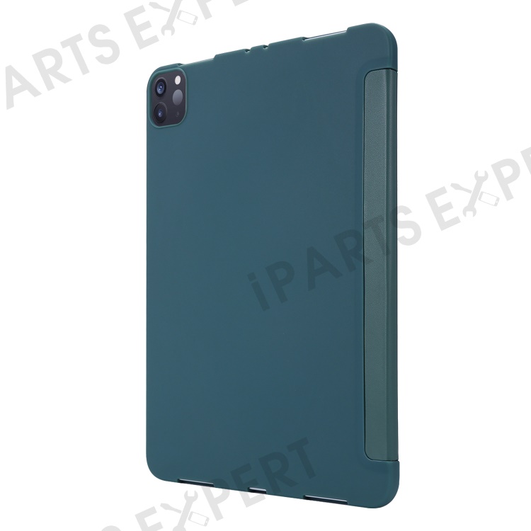 Tri-fold Stand Silicone + PU Leather Tablet Case Cover for iPad Pro 11-inch (2021) - Green