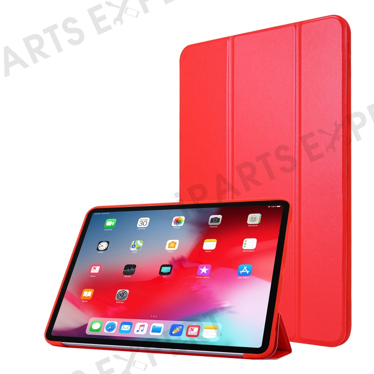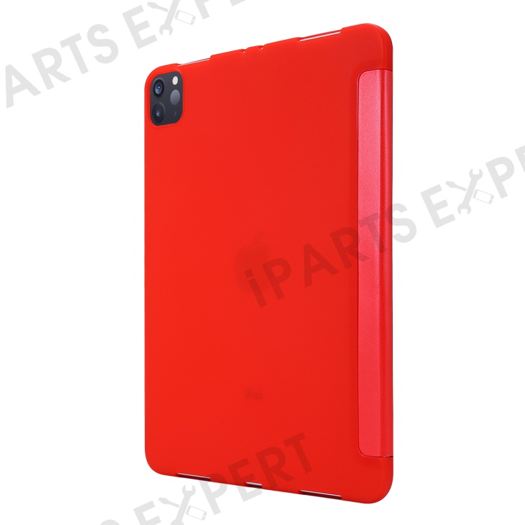 Tri-fold Stand Silicone + PU Leather Tablet Case Cover for iPad Pro 11-inch (2021) - Red